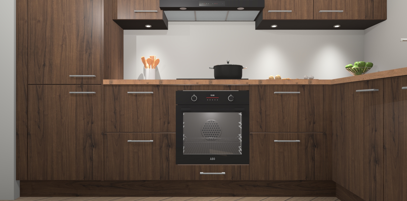 De Noten keuken Geneve is uitgerust met 5 inbouwapparaten - een oven, inductiekookplaat, afzuigkap, vaatwasser en koelkast - voor al uw kook- en bewaarbehoeftes. U kunt deze apparaten desgewenst eenvoudig upgraden naar AEG of de oven omruilen voor een combimagnetron na het plaatsen van uw bestelling. En met de soft close deuren, voldoende opbergruimte en kasten die voorgemonteerd worden geleverd, bent u in een mum van tijd klaar om heerlijke maaltijden te bereiden!