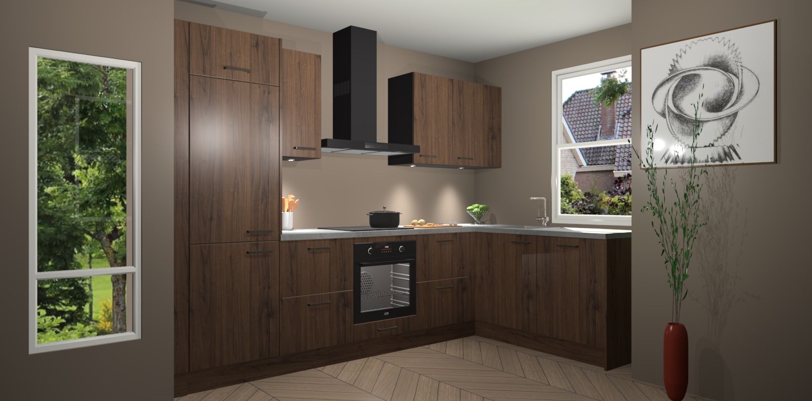 Bent u op zoek naar een moderne en tijdloze keuken die schoonheid in uw huis brengt? Zoek dan niet verder dan de Noten keuken Geneve - de perfecte keuken voor al uw wensen. Deze hoekkeuken biedt de hoogste Duitse kwaliteit voor een vaste lage prijs en is zeker een blikvanger in uw huis!