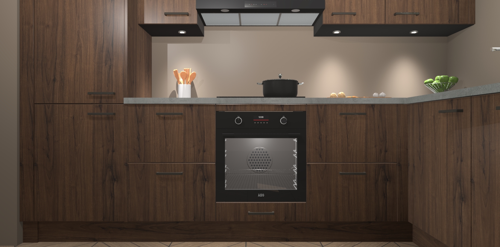 De Noten keuken Geneve is uitgerust met 5 inbouwapparaten - een oven, inductiekookplaat, afzuigkap, vaatwasser en koelkast - voor al uw kook- en bewaarbehoeftes. U kunt deze apparaten desgewenst eenvoudig upgraden naar AEG of de oven omruilen voor een combimagnetron na het plaatsen van uw bestelling. En met de soft close deuren, voldoende opbergruimte en kasten die voorgemonteerd worden geleverd, bent u in een mum van tijd klaar om heerlijke maaltijden te bereiden!