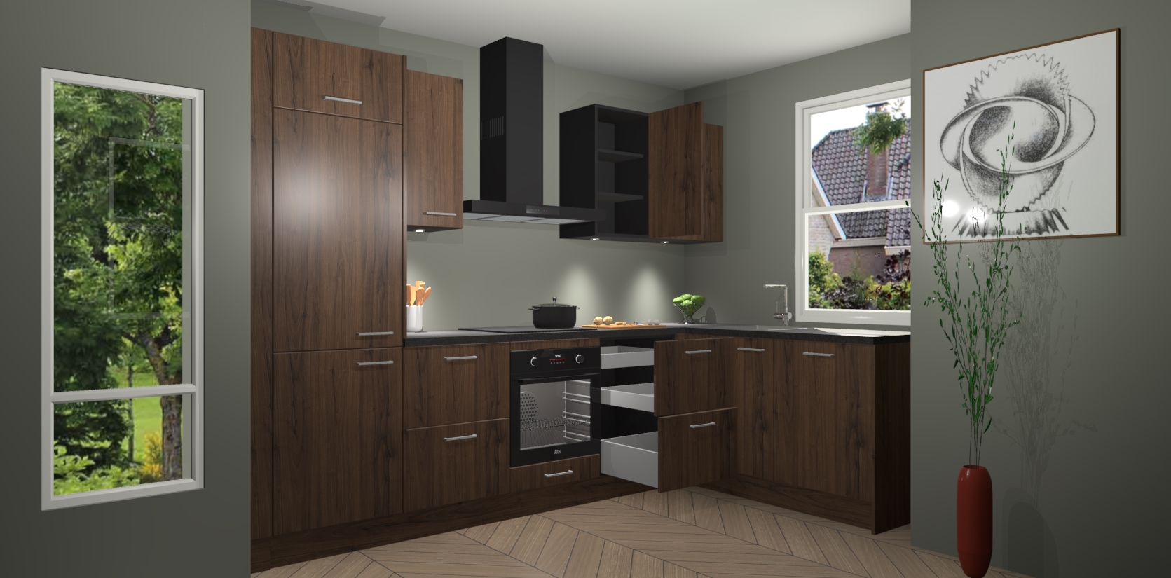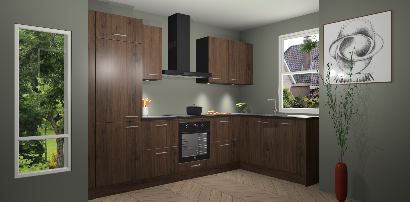 Bent u op zoek naar een moderne en tijdloze keuken die schoonheid in uw huis brengt? Zoek dan niet verder dan de Noten keuken Geneve - de perfecte keuken voor al uw wensen. Deze hoekkeuken biedt de hoogste Duitse kwaliteit voor een vaste lage prijs en is zeker een blikvanger in uw huis!