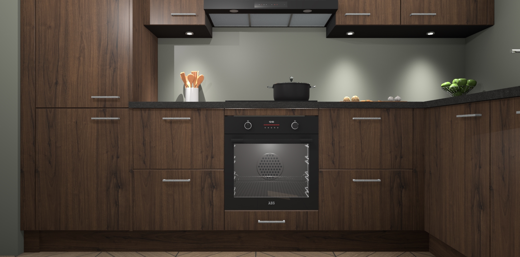 De Noten keuken Geneve is uitgerust met 5 inbouwapparaten - een oven, inductiekookplaat, afzuigkap, vaatwasser en koelkast - voor al uw kook- en bewaarbehoeftes. U kunt deze apparaten desgewenst eenvoudig upgraden naar AEG of de oven omruilen voor een combimagnetron na het plaatsen van uw bestelling. En met de soft close deuren, voldoende opbergruimte en kasten die voorgemonteerd worden geleverd, bent u in een mum van tijd klaar om heerlijke maaltijden te bereiden!