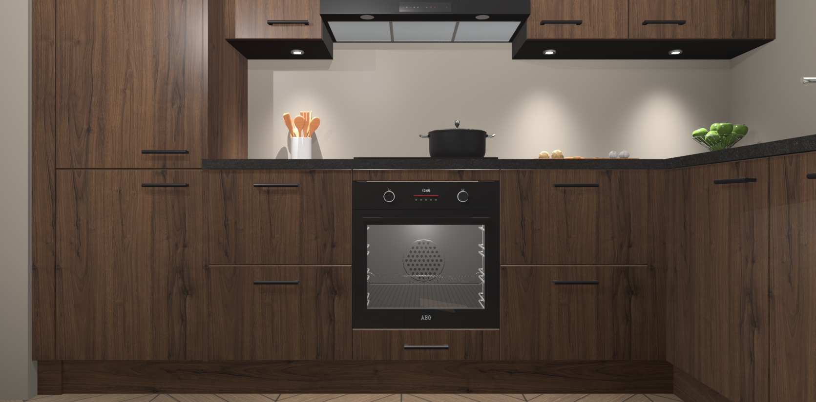 De Noten keuken Geneve is uitgerust met 5 inbouwapparaten - een oven, inductiekookplaat, afzuigkap, vaatwasser en koelkast - voor al uw kook- en bewaarbehoeftes. U kunt deze apparaten desgewenst eenvoudig upgraden naar AEG of de oven omruilen voor een combimagnetron na het plaatsen van uw bestelling. En met de soft close deuren, voldoende opbergruimte en kasten die voorgemonteerd worden geleverd, bent u in een mum van tijd klaar om heerlijke maaltijden te bereiden!