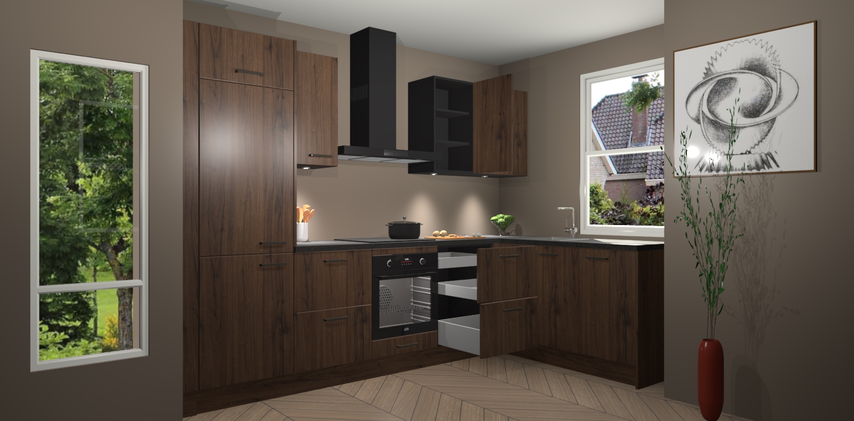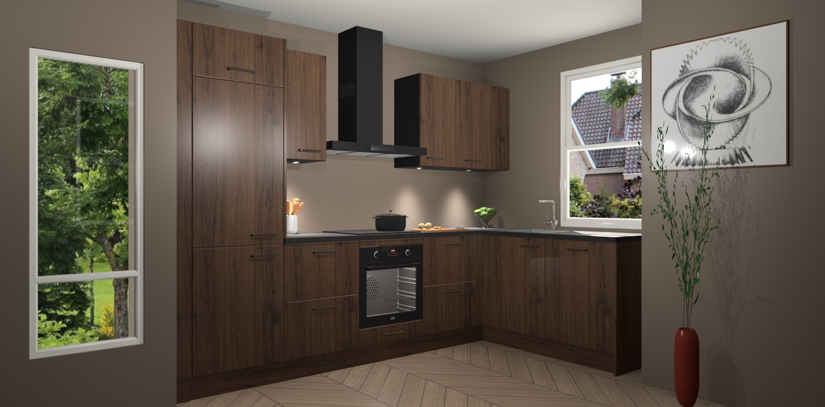 Bent u op zoek naar een moderne en tijdloze keuken die schoonheid in uw huis brengt? Zoek dan niet verder dan de Noten keuken Geneve - de perfecte keuken voor al uw wensen. Deze hoekkeuken biedt de hoogste Duitse kwaliteit voor een vaste lage prijs en is zeker een blikvanger in uw huis!