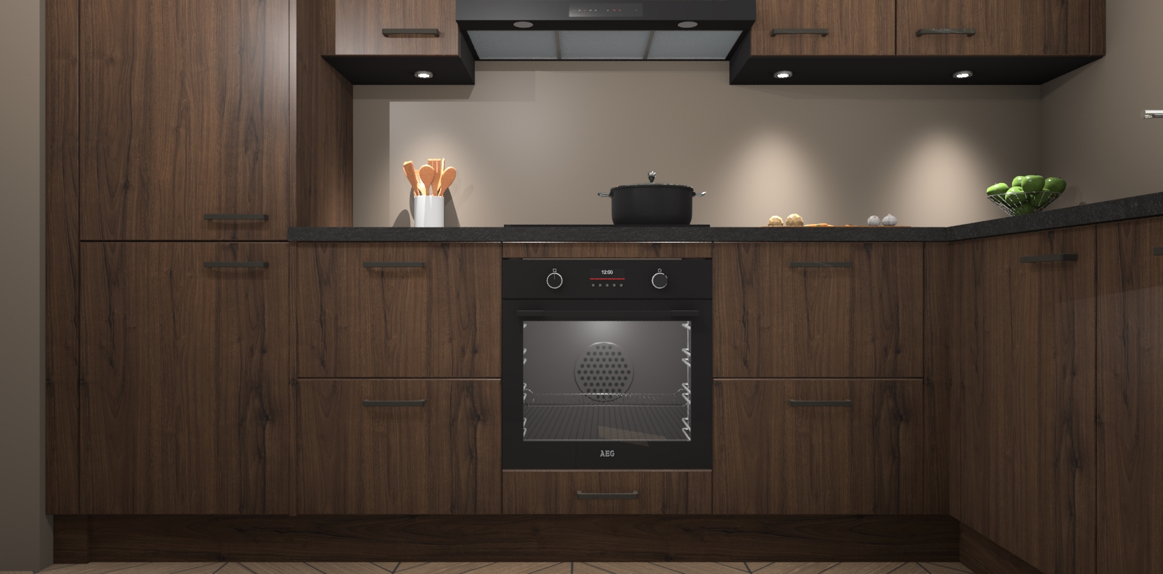 De Noten keuken Geneve is uitgerust met 5 inbouwapparaten - een oven, inductiekookplaat, afzuigkap, vaatwasser en koelkast - voor al uw kook- en bewaarbehoeftes. U kunt deze apparaten desgewenst eenvoudig upgraden naar AEG of de oven omruilen voor een combimagnetron na het plaatsen van uw bestelling. En met de soft close deuren, voldoende opbergruimte en kasten die voorgemonteerd worden geleverd, bent u in een mum van tijd klaar om heerlijke maaltijden te bereiden!