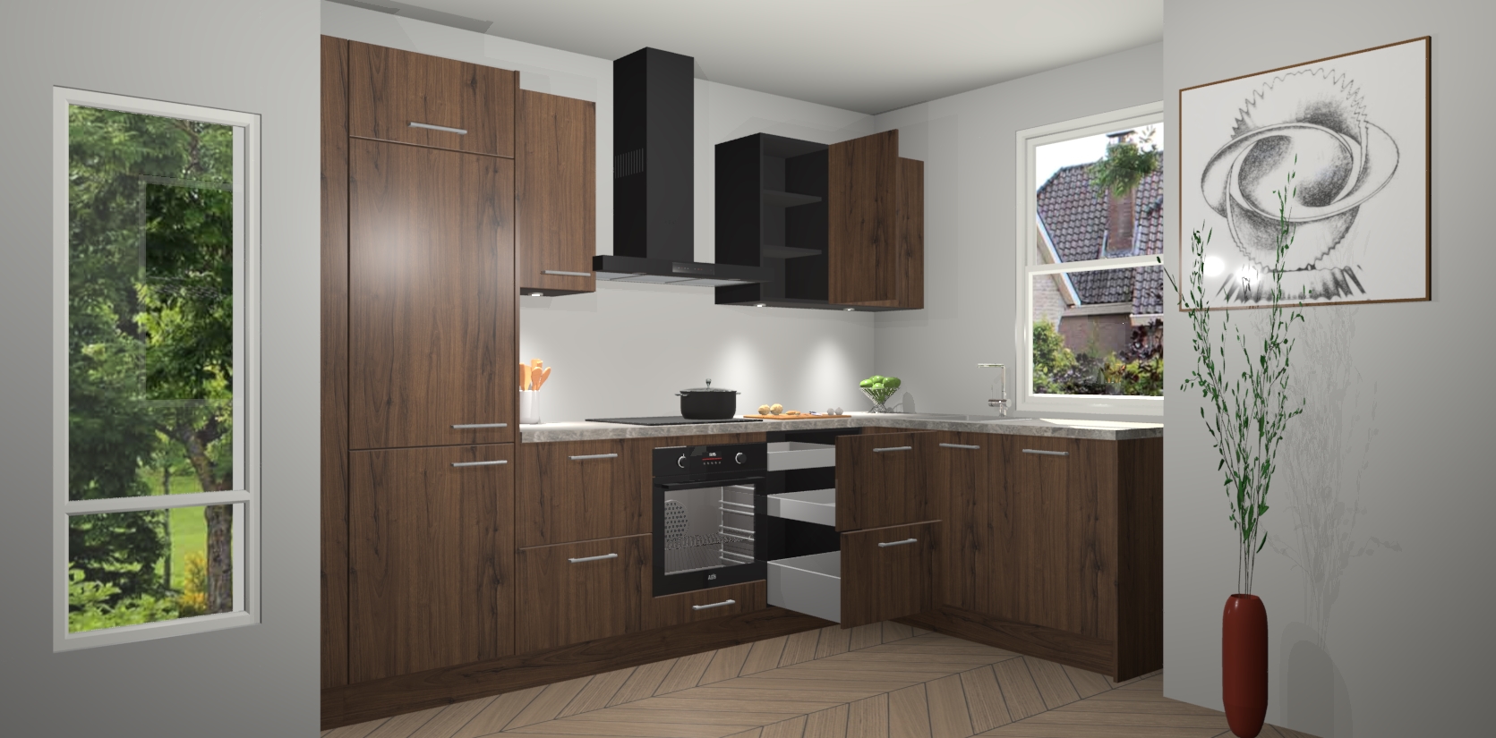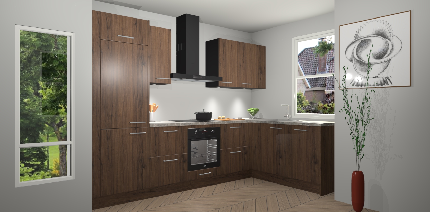 Bent u op zoek naar een moderne en tijdloze keuken die schoonheid in uw huis brengt? Zoek dan niet verder dan de Noten keuken Geneve - de perfecte keuken voor al uw wensen. Deze hoekkeuken biedt de hoogste Duitse kwaliteit voor een vaste lage prijs en is zeker een blikvanger in uw huis!