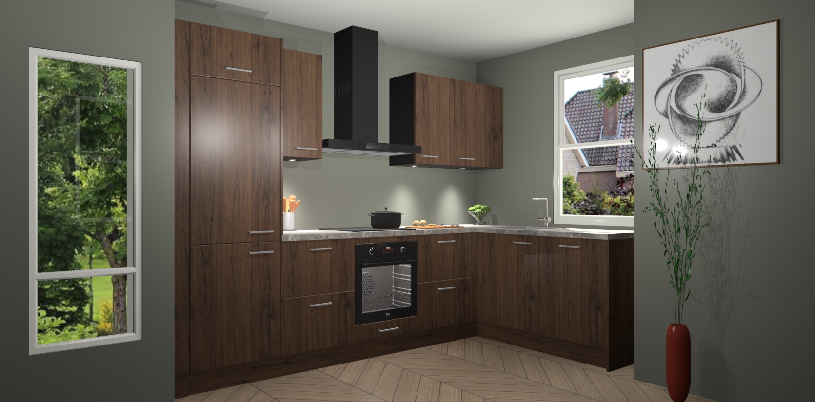 Bent u op zoek naar een moderne en tijdloze keuken die schoonheid in uw huis brengt? Zoek dan niet verder dan de Noten keuken Geneve - de perfecte keuken voor al uw wensen. Deze hoekkeuken biedt de hoogste Duitse kwaliteit voor een vaste lage prijs en is zeker een blikvanger in uw huis!