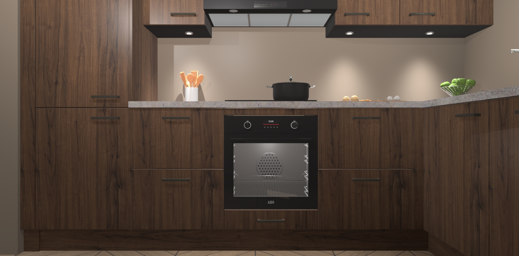 De Noten keuken Geneve is uitgerust met 5 inbouwapparaten - een oven, inductiekookplaat, afzuigkap, vaatwasser en koelkast - voor al uw kook- en bewaarbehoeftes. U kunt deze apparaten desgewenst eenvoudig upgraden naar AEG of de oven omruilen voor een combimagnetron na het plaatsen van uw bestelling. En met de soft close deuren, voldoende opbergruimte en kasten die voorgemonteerd worden geleverd, bent u in een mum van tijd klaar om heerlijke maaltijden te bereiden!