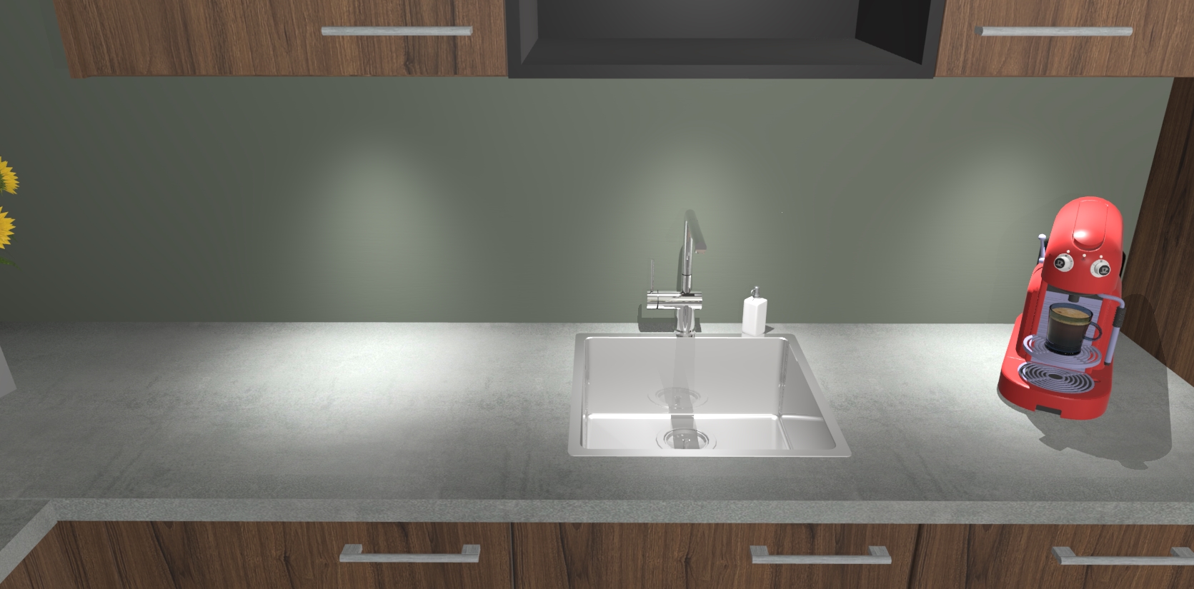 - De spoelbak is nog niet in gevreesd. Dit dient tijdens het werk gedaan te worden