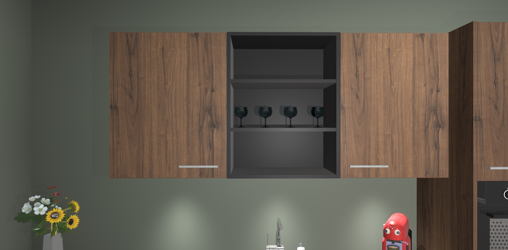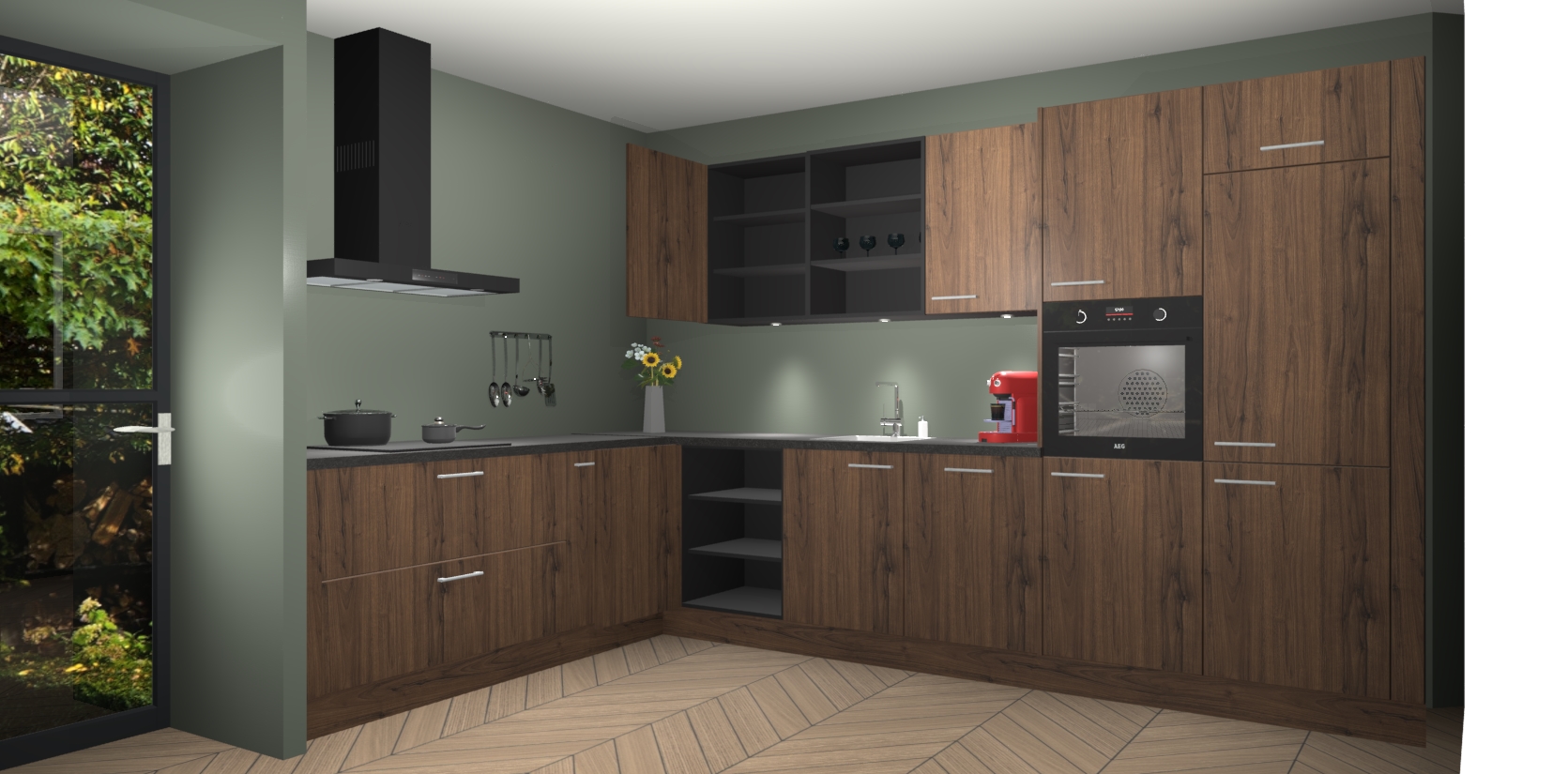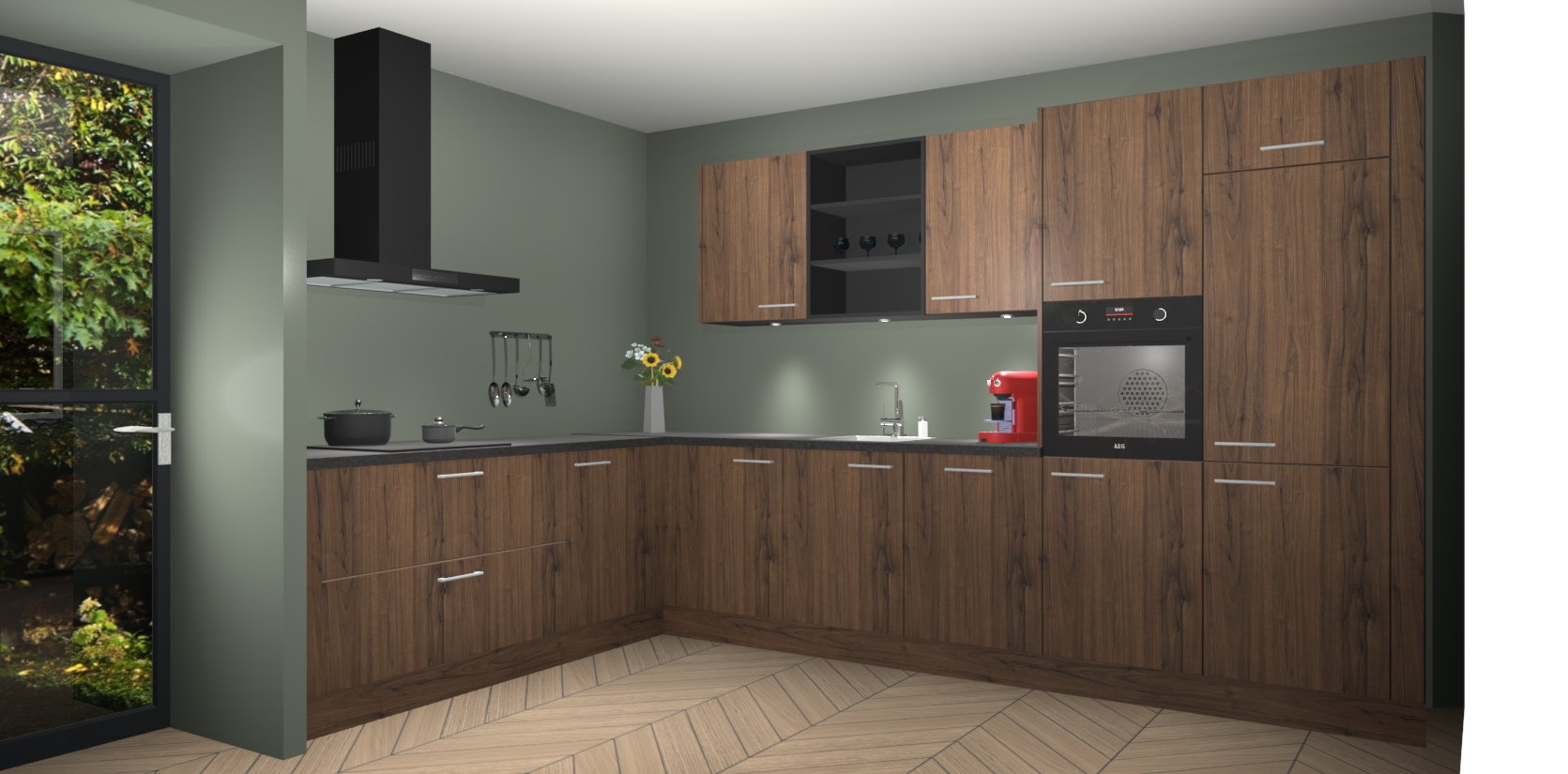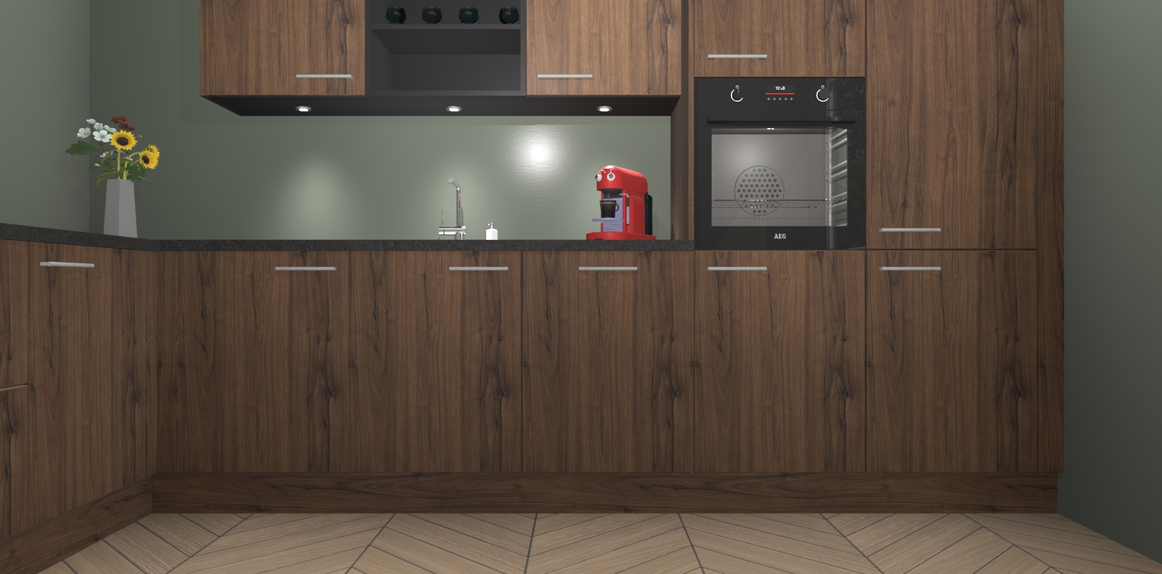 De Noten keuken Gotenburg is zo ontworpen dat u alle mogelijke vormen van opslagruimte kunt genieten. Bovendien heeft u meteen toegang tot vijf ingebouwde apparaten: een oven, inductiekookplaat, afzuigkap, vaatwasser en koelkast. Gewoon upgraden naar AEG na bestelling? Dit kan heel gemakkelijk worden geregeld. De deuren sluiten zacht dankzij zachtsluitende scharnieren en ze houden warmte vast terwijl ze uitzonderlijk stil blijven wanneer ze worden geopend of gesloten.