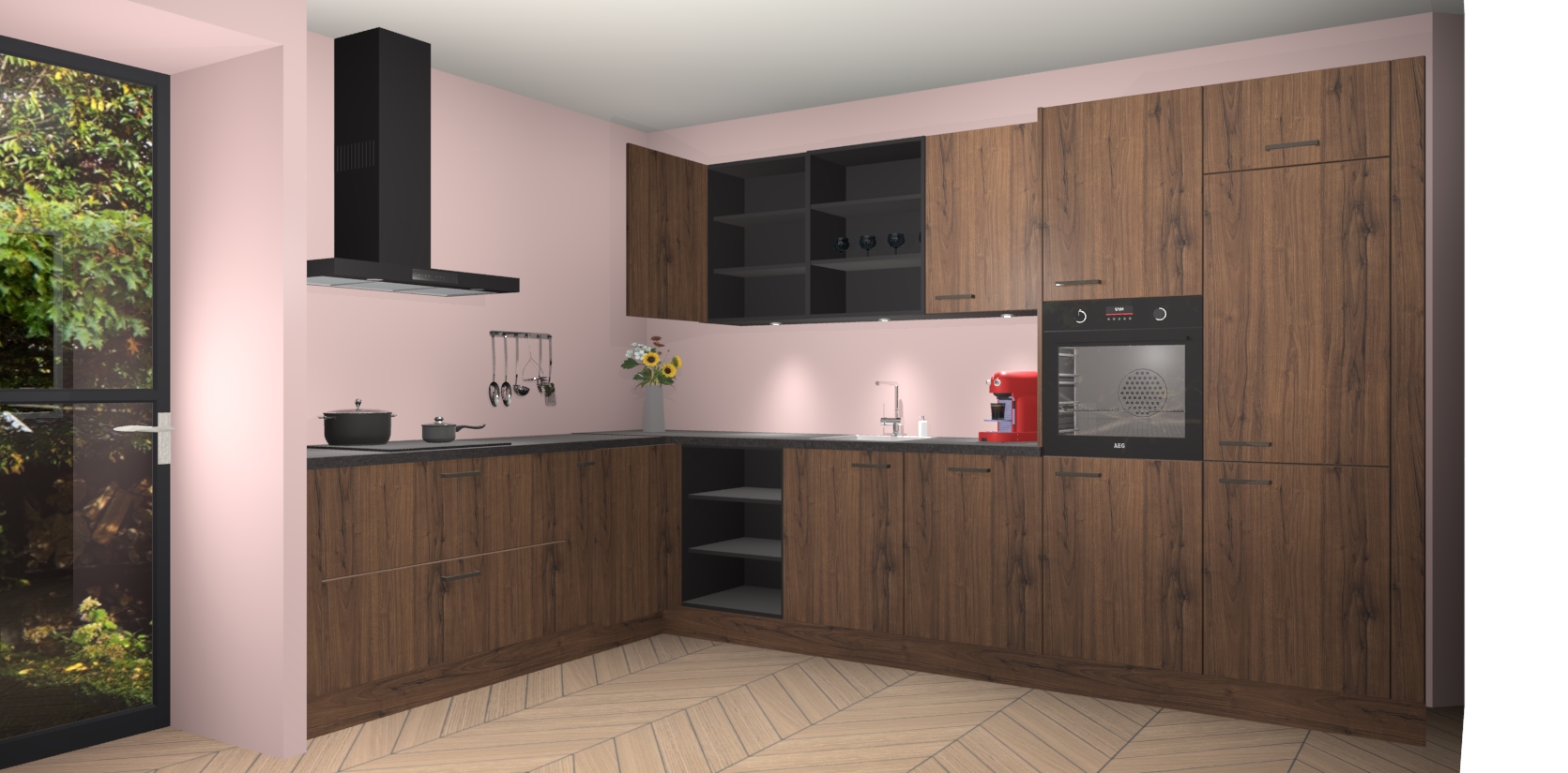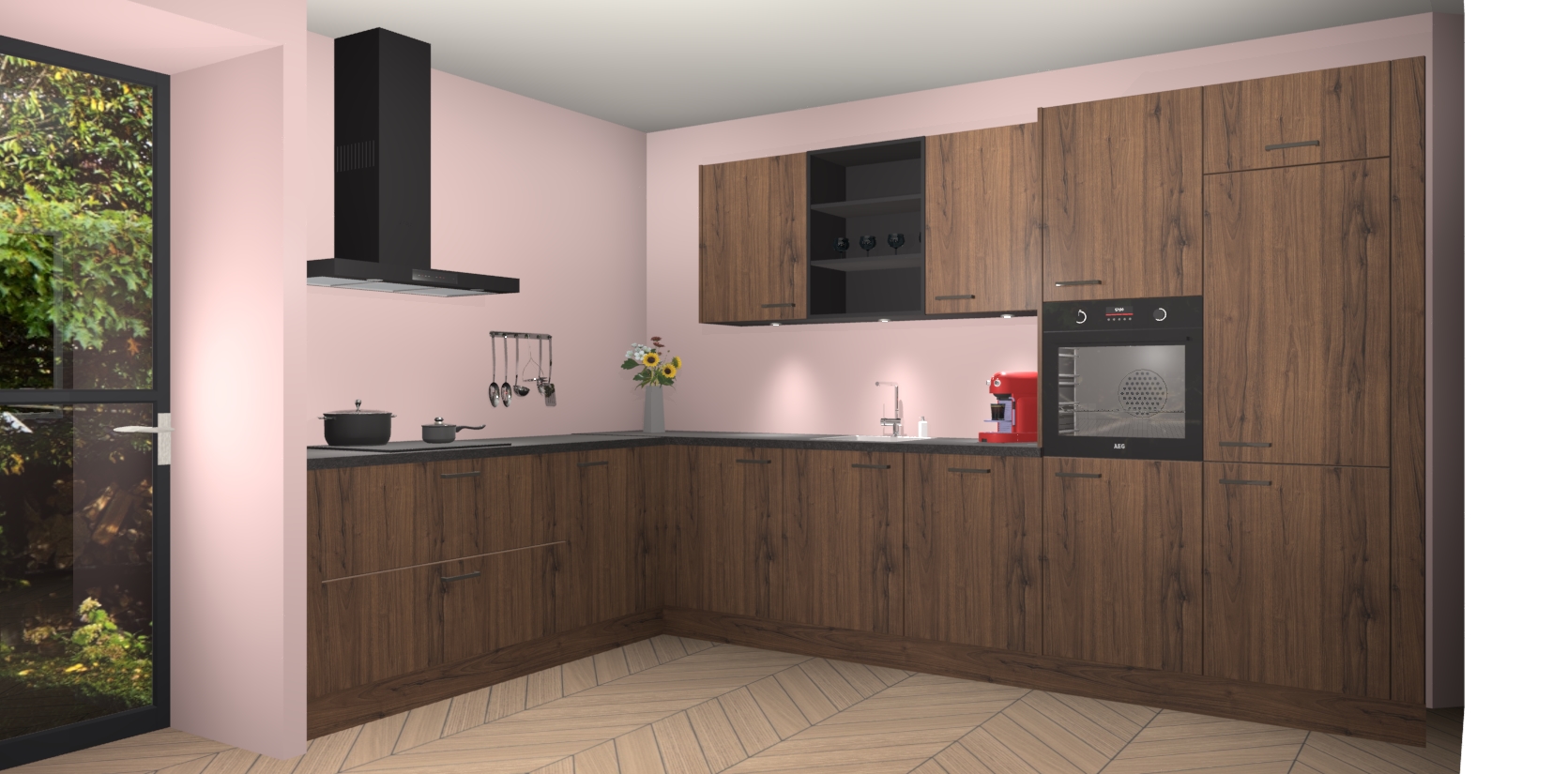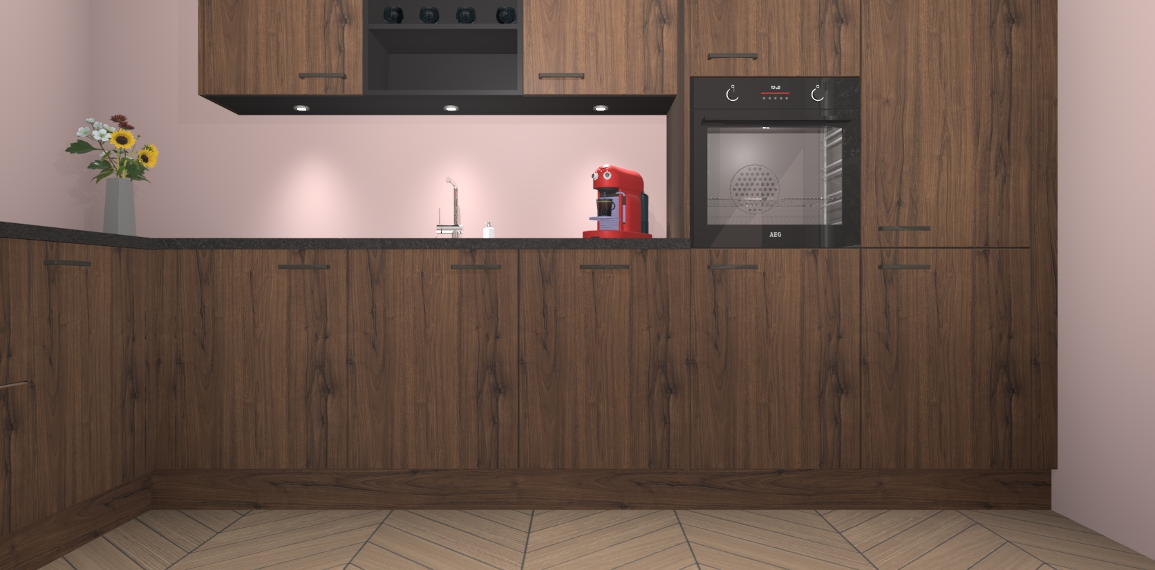 De Noten keuken Gotenburg is zo ontworpen dat u alle mogelijke vormen van opslagruimte kunt genieten. Bovendien heeft u meteen toegang tot vijf ingebouwde apparaten: een oven, inductiekookplaat, afzuigkap, vaatwasser en koelkast. Gewoon upgraden naar AEG na bestelling? Dit kan heel gemakkelijk worden geregeld. De deuren sluiten zacht dankzij zachtsluitende scharnieren en ze houden warmte vast terwijl ze uitzonderlijk stil blijven wanneer ze worden geopend of gesloten.