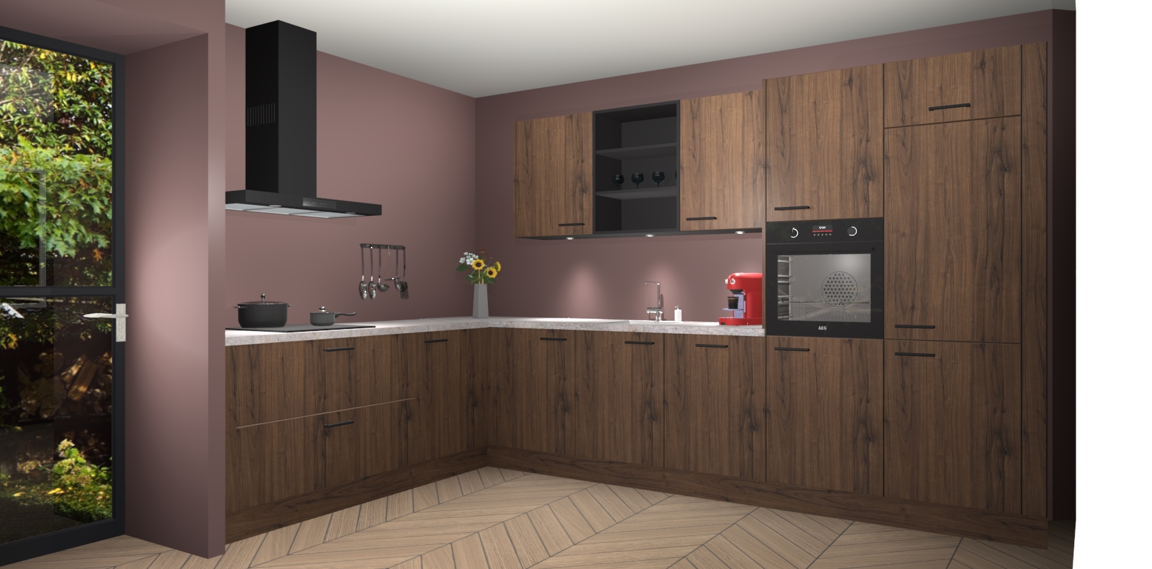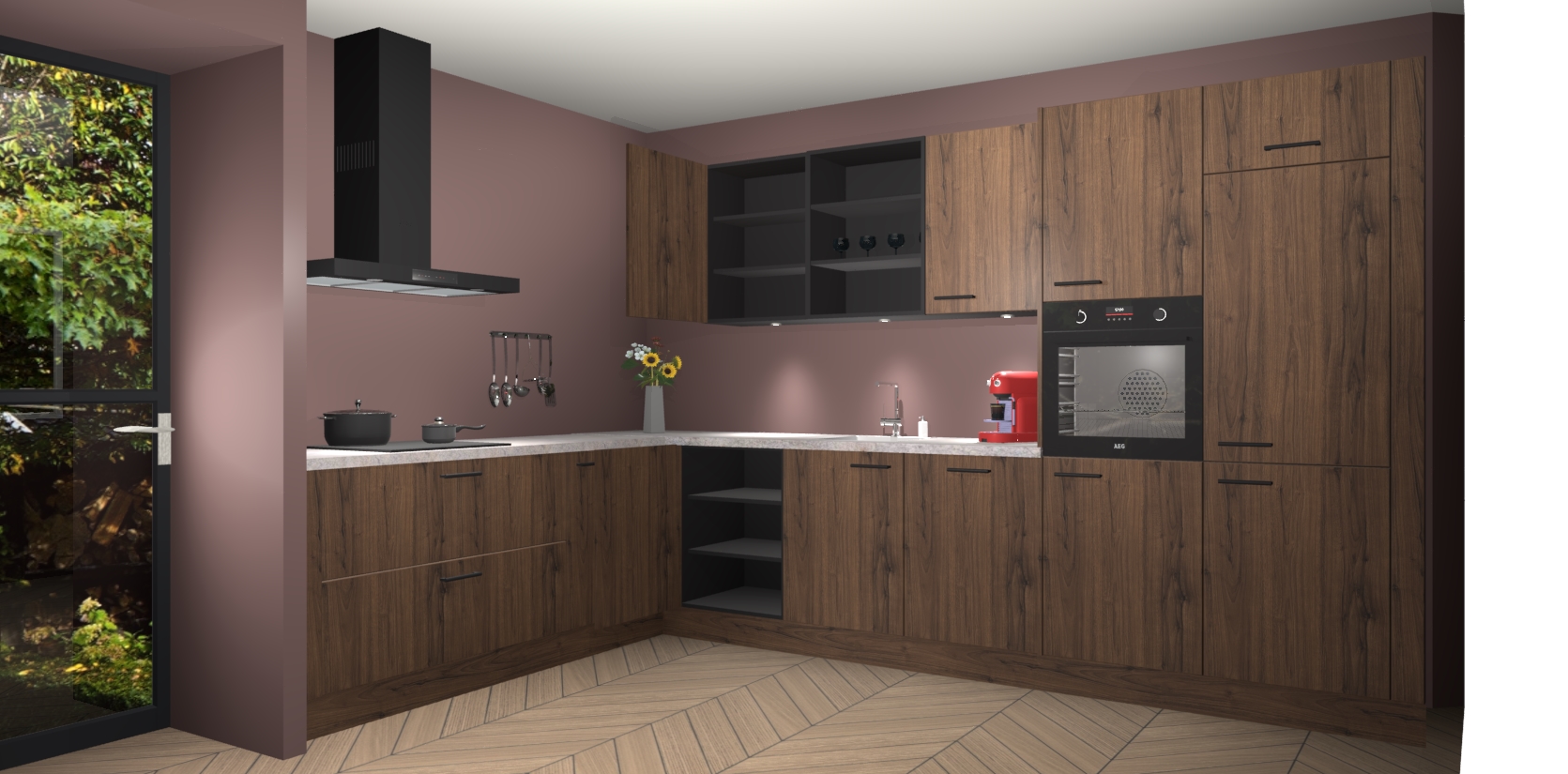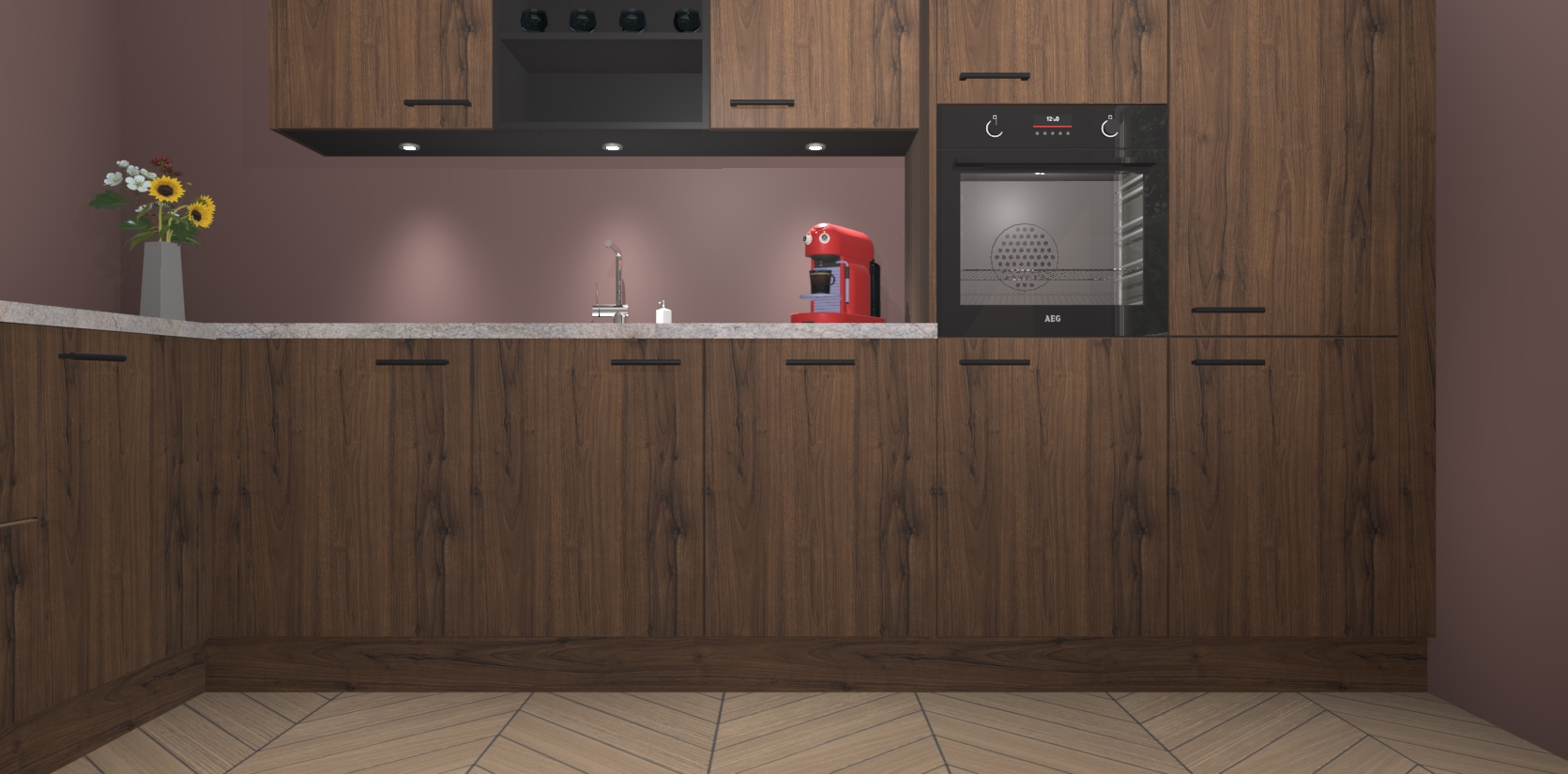 De Noten keuken Gotenburg is zo ontworpen dat u alle mogelijke vormen van opslagruimte kunt genieten. Bovendien heeft u meteen toegang tot vijf ingebouwde apparaten: een oven, inductiekookplaat, afzuigkap, vaatwasser en koelkast. Gewoon upgraden naar AEG na bestelling? Dit kan heel gemakkelijk worden geregeld. De deuren sluiten zacht dankzij zachtsluitende scharnieren en ze houden warmte vast terwijl ze uitzonderlijk stil blijven wanneer ze worden geopend of gesloten.