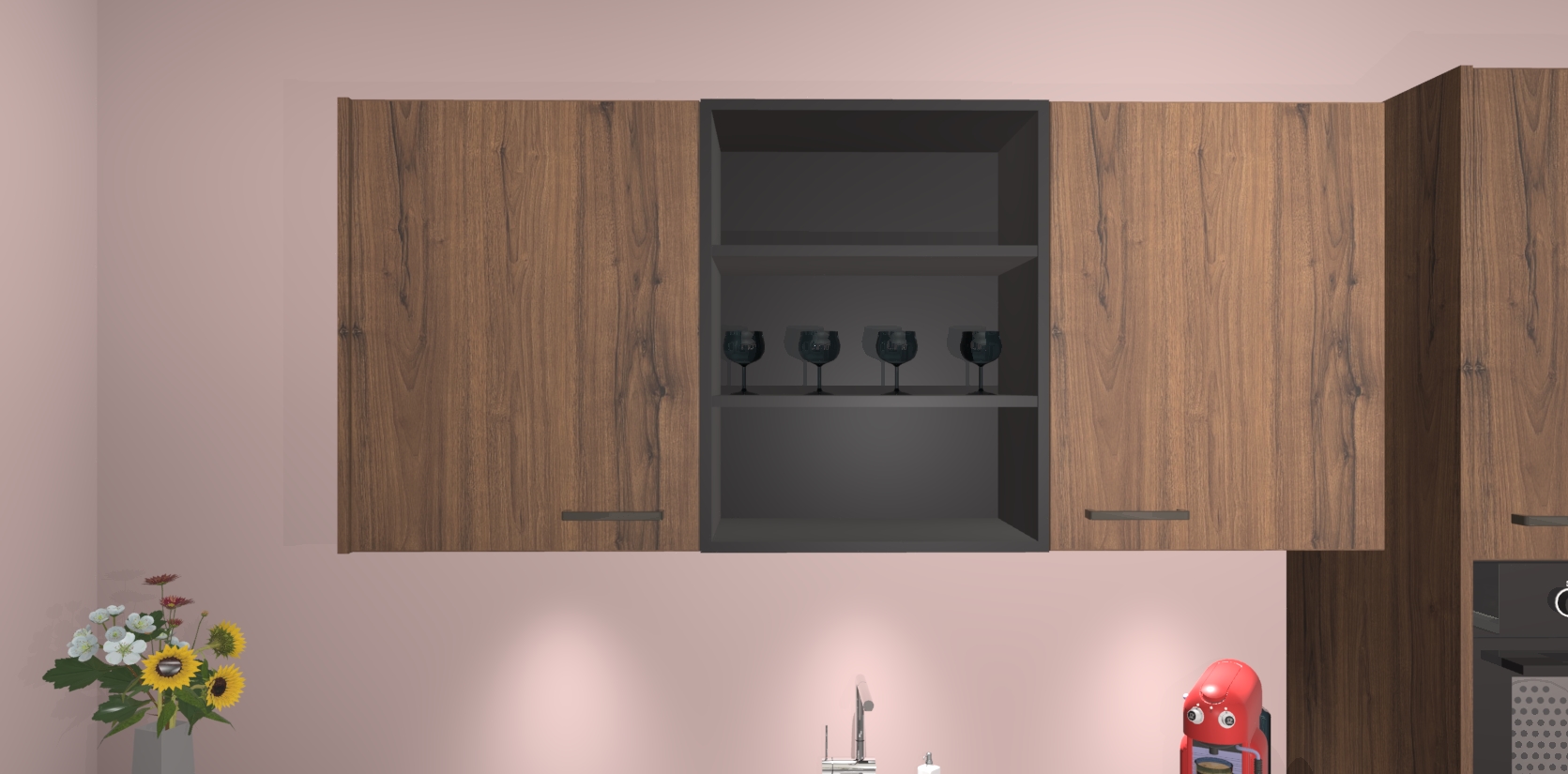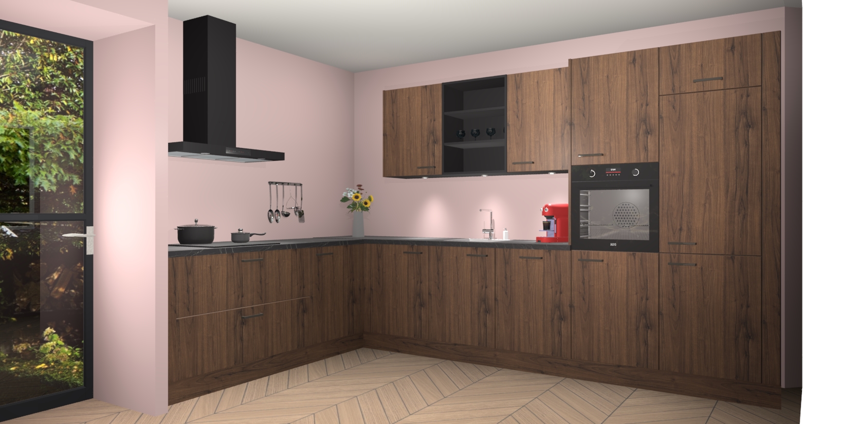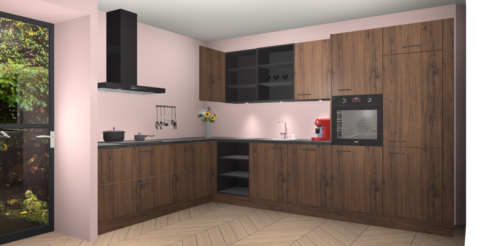De Noten keuken Gotenburg is zo ontworpen dat u alle mogelijke vormen van opslagruimte kunt genieten. Bovendien heeft u meteen toegang tot vijf ingebouwde apparaten: een oven, inductiekookplaat, afzuigkap, vaatwasser en koelkast. Gewoon upgraden naar AEG na bestelling? Dit kan heel gemakkelijk worden geregeld. De deuren sluiten zacht dankzij zachtsluitende scharnieren en ze houden warmte vast terwijl ze uitzonderlijk stil blijven wanneer ze worden geopend of gesloten.