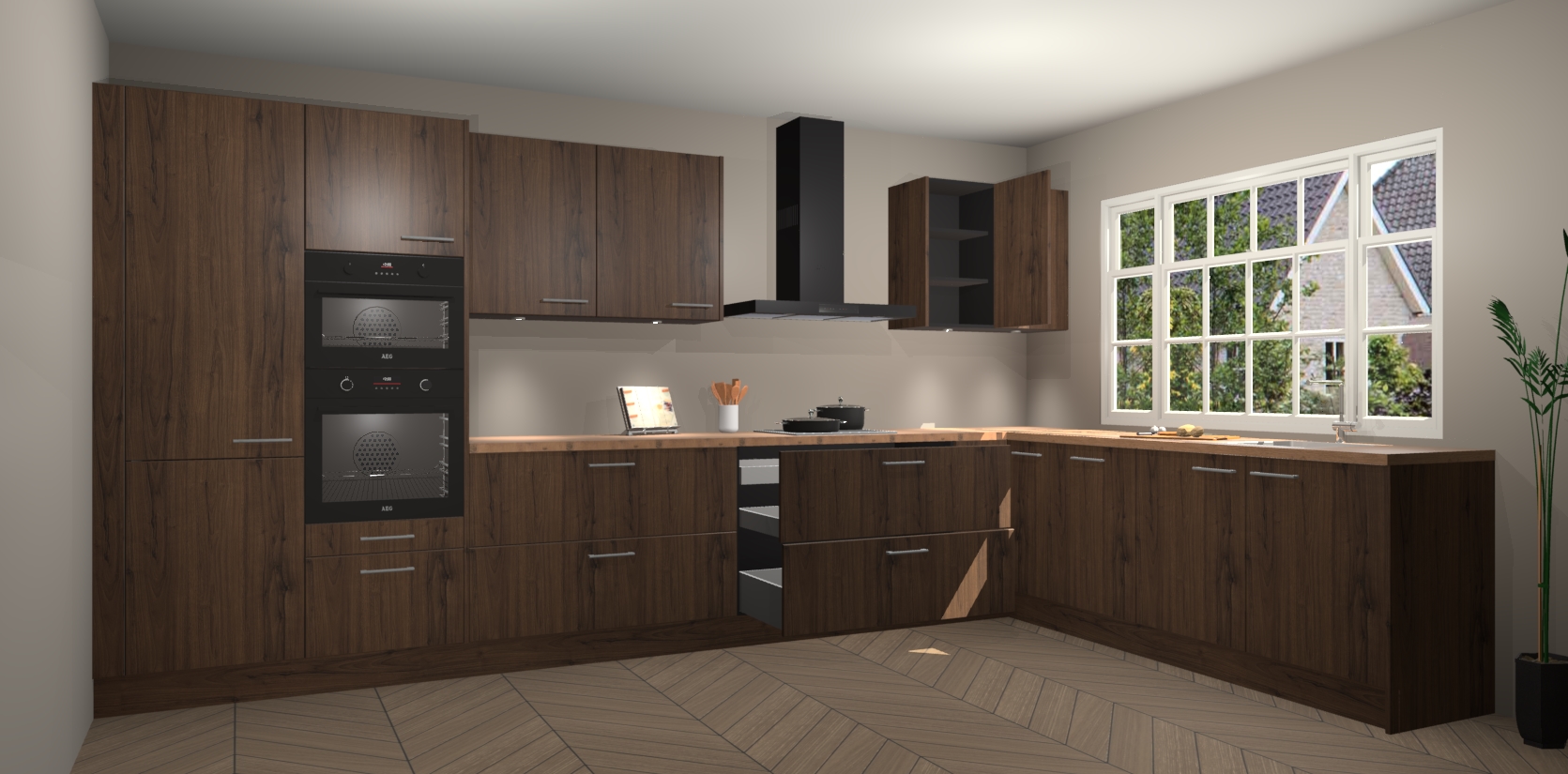Kom dichtbij de perfecte keuken van uw dromen met de noten keuken Graz. Met een prachtige houtlook en eigentijds ontwerp, straalt deze keuken warmte en sfeer uit. Of u nu liefhebber bent van traditionele of moderne stijlen, er is genoeg ruimte om aan al uw behoeften te voldoen.