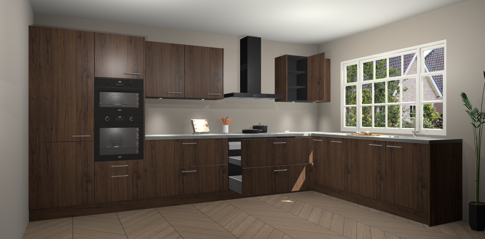 Kom dichtbij de perfecte keuken van uw dromen met de noten keuken Graz. Met een prachtige houtlook en eigentijds ontwerp, straalt deze keuken warmte en sfeer uit. Of u nu liefhebber bent van traditionele of moderne stijlen, er is genoeg ruimte om aan al uw behoeften te voldoen.