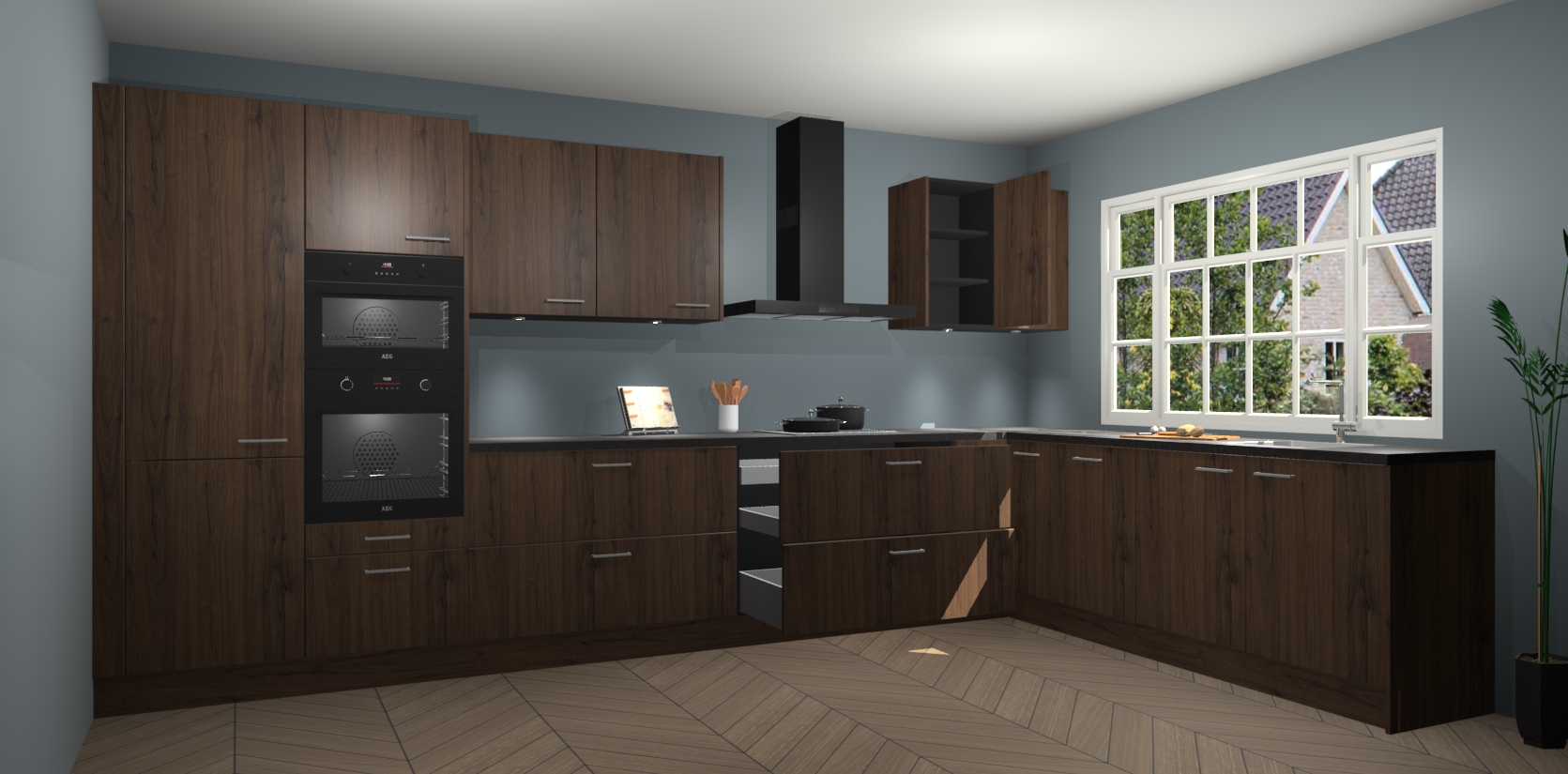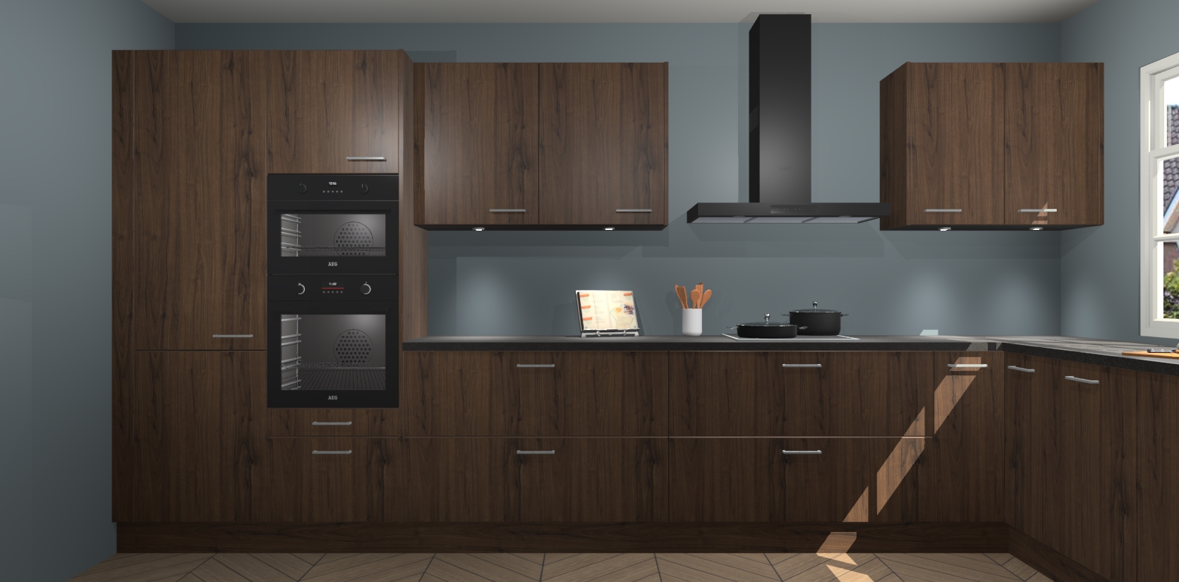 Kom dichtbij de perfecte keuken van uw dromen met de noten keuken Graz. Met een prachtige houtlook en eigentijds ontwerp, straalt deze keuken warmte en sfeer uit. Of u nu liefhebber bent van traditionele of moderne stijlen, er is genoeg ruimte om aan al uw behoeften te voldoen.