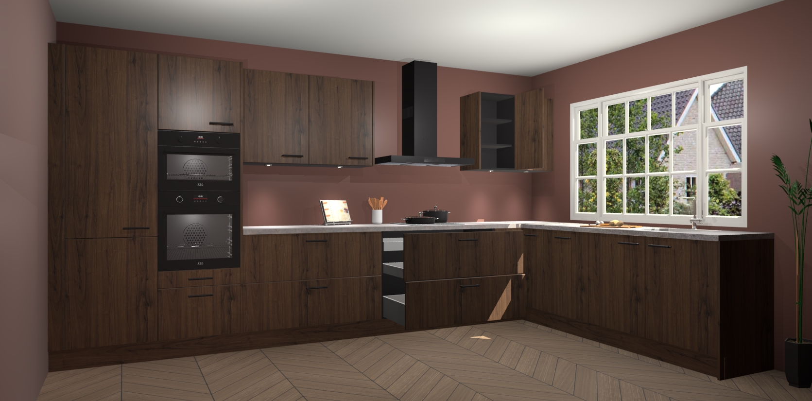 Kom dichtbij de perfecte keuken van uw dromen met de noten keuken Graz. Met een prachtige houtlook en eigentijds ontwerp, straalt deze keuken warmte en sfeer uit. Of u nu liefhebber bent van traditionele of moderne stijlen, er is genoeg ruimte om aan al uw behoeften te voldoen.