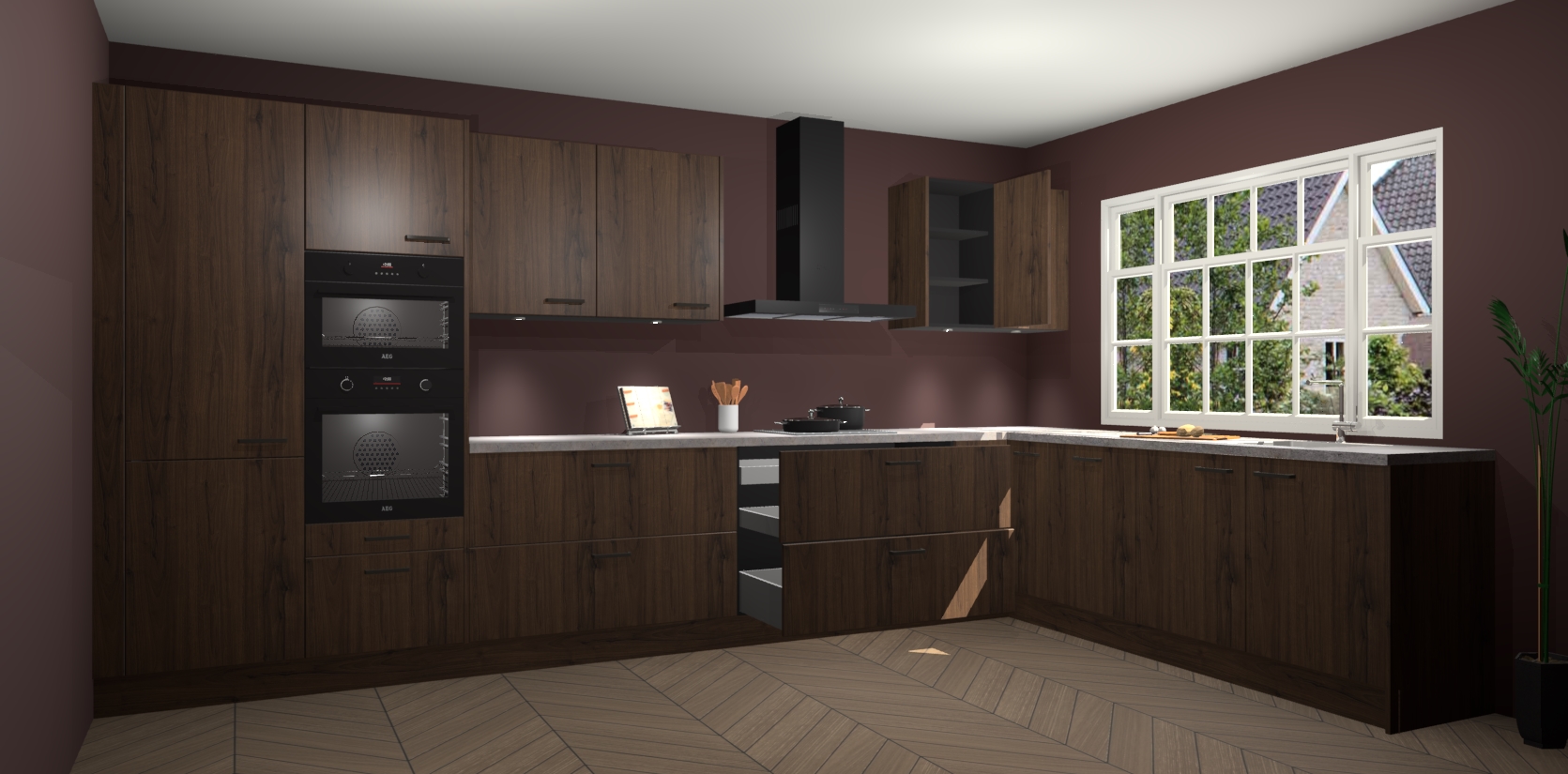 Kom dichtbij de perfecte keuken van uw dromen met de noten keuken Graz. Met een prachtige houtlook en eigentijds ontwerp, straalt deze keuken warmte en sfeer uit. Of u nu liefhebber bent van traditionele of moderne stijlen, er is genoeg ruimte om aan al uw behoeften te voldoen.