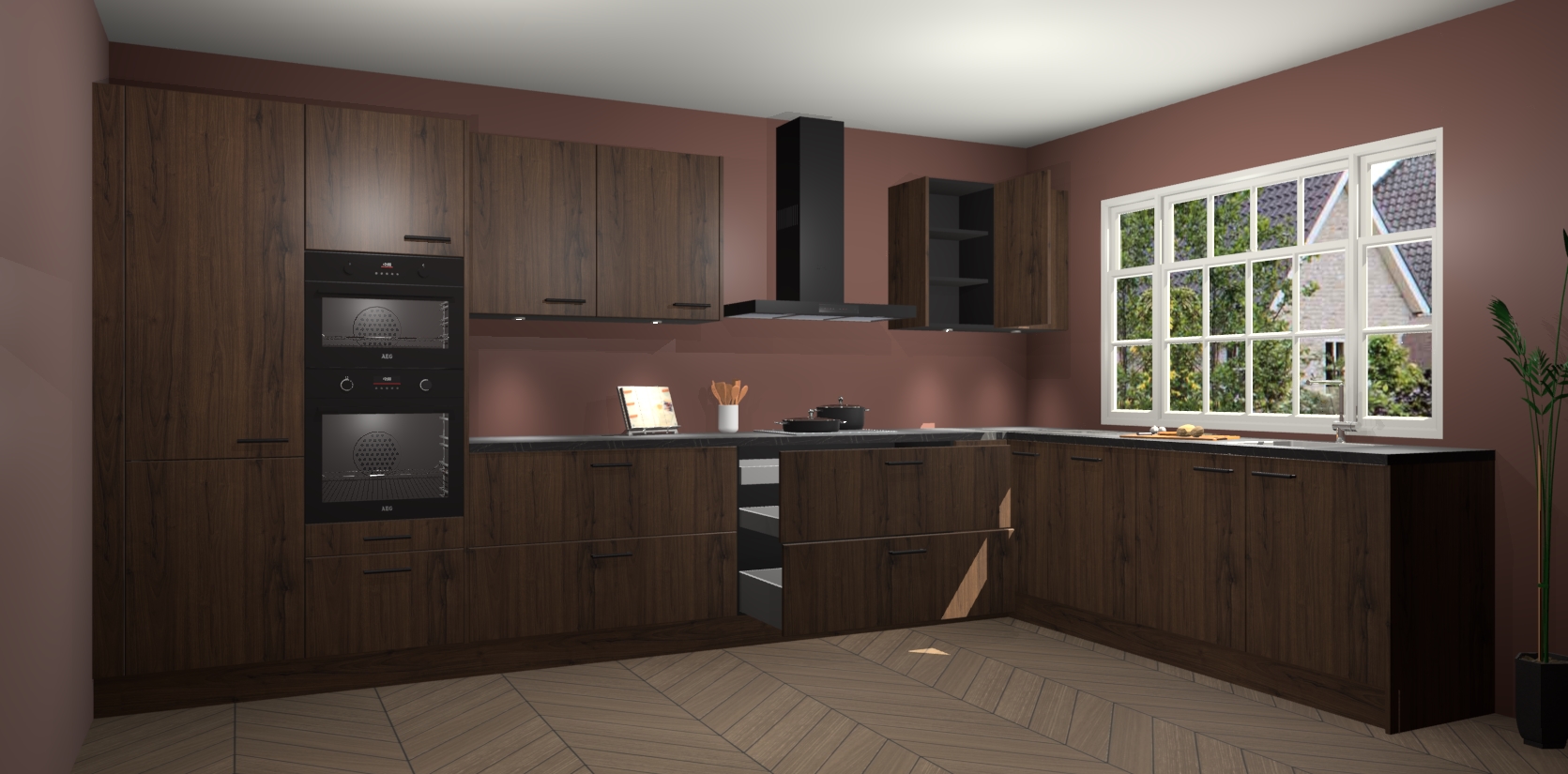 Kom dichtbij de perfecte keuken van uw dromen met de noten keuken Graz. Met een prachtige houtlook en eigentijds ontwerp, straalt deze keuken warmte en sfeer uit. Of u nu liefhebber bent van traditionele of moderne stijlen, er is genoeg ruimte om aan al uw behoeften te voldoen.
