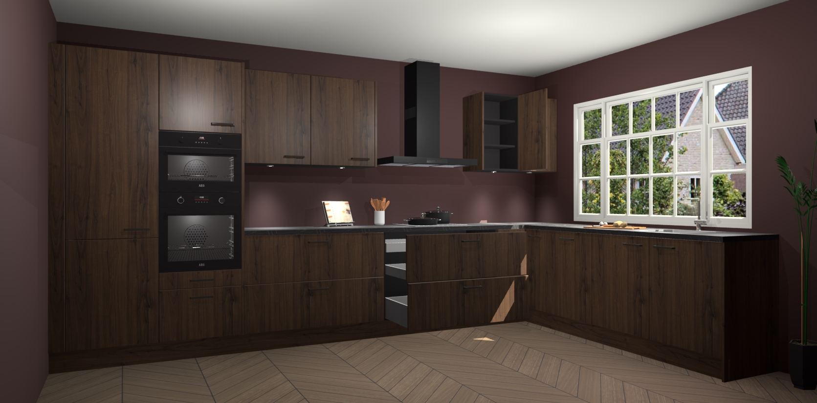 Kom dichtbij de perfecte keuken van uw dromen met de noten keuken Graz. Met een prachtige houtlook en eigentijds ontwerp, straalt deze keuken warmte en sfeer uit. Of u nu liefhebber bent van traditionele of moderne stijlen, er is genoeg ruimte om aan al uw behoeften te voldoen.