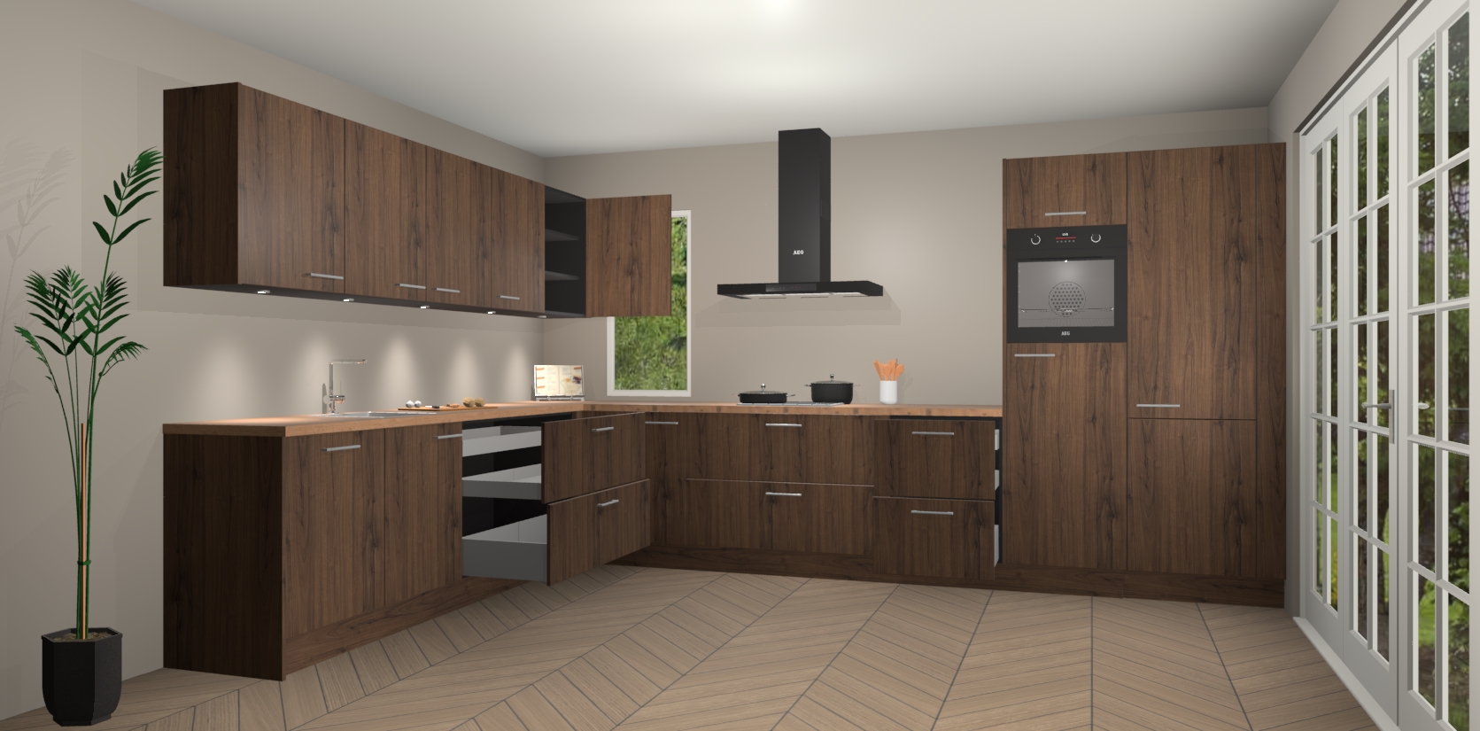 Heeft u nog apparatuur nodig? Geen probleem: de noten keuken Harare bevat vijf ingebouwde apparaten - een oven, inductiekookplaat, afzuigkap, vaatwasser en koelkast - die gemakkelijk kunnen worden bijgewerkt naar AEG na bestelling. En als dat nog niet genoeg is; onze kasten worden pre-geassembleerd geleverd en zijn verkrijgbaar tegen een vastgeroeste lage prijs! U hoeft nooit meer te zoeken naar goede kwaliteit en service want onze producten hebben echt Duitse kwaliteit.