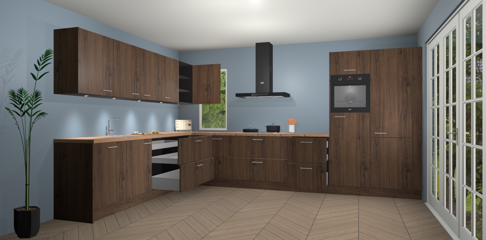 Heeft u nog apparatuur nodig? Geen probleem: de noten keuken Harare bevat vijf ingebouwde apparaten - een oven, inductiekookplaat, afzuigkap, vaatwasser en koelkast - die gemakkelijk kunnen worden bijgewerkt naar AEG na bestelling. En als dat nog niet genoeg is; onze kasten worden pre-geassembleerd geleverd en zijn verkrijgbaar tegen een vastgeroeste lage prijs! U hoeft nooit meer te zoeken naar goede kwaliteit en service want onze producten hebben echt Duitse kwaliteit.