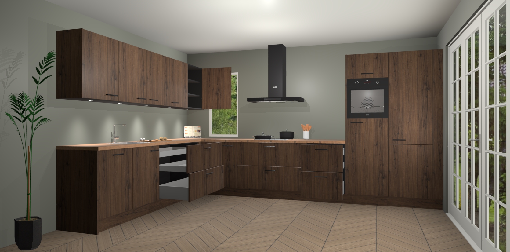 Heeft u nog apparatuur nodig? Geen probleem: de noten keuken Harare bevat vijf ingebouwde apparaten - een oven, inductiekookplaat, afzuigkap, vaatwasser en koelkast - die gemakkelijk kunnen worden bijgewerkt naar AEG na bestelling. En als dat nog niet genoeg is; onze kasten worden pre-geassembleerd geleverd en zijn verkrijgbaar tegen een vastgeroeste lage prijs! U hoeft nooit meer te zoeken naar goede kwaliteit en service want onze producten hebben echt Duitse kwaliteit.