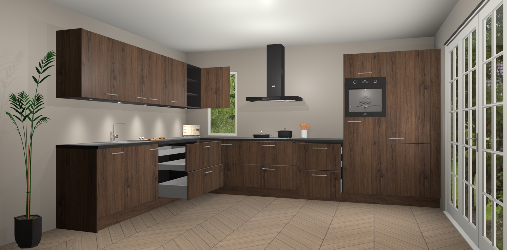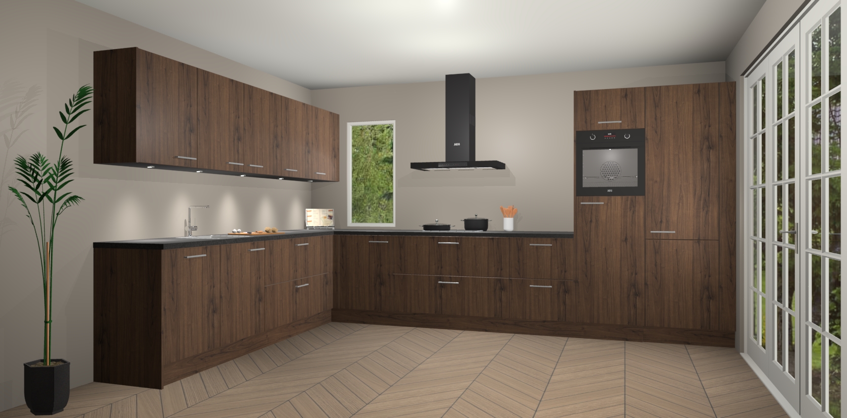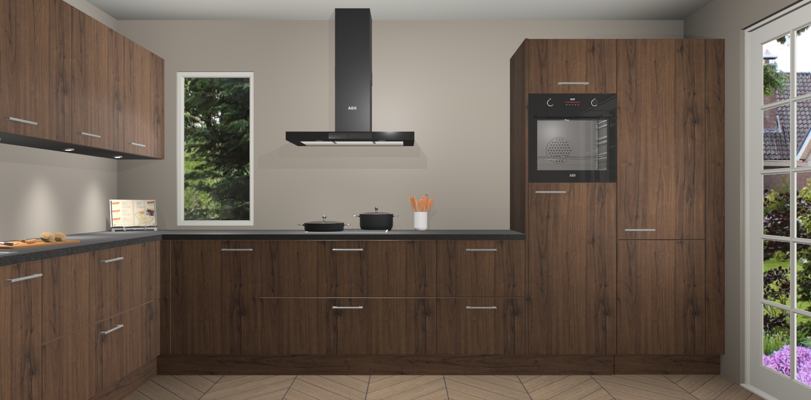 Heeft u nog apparatuur nodig? Geen probleem: de noten keuken Harare bevat vijf ingebouwde apparaten - een oven, inductiekookplaat, afzuigkap, vaatwasser en koelkast - die gemakkelijk kunnen worden bijgewerkt naar AEG na bestelling. En als dat nog niet genoeg is; onze kasten worden pre-geassembleerd geleverd en zijn verkrijgbaar tegen een vastgeroeste lage prijs! U hoeft nooit meer te zoeken naar goede kwaliteit en service want onze producten hebben echt Duitse kwaliteit.