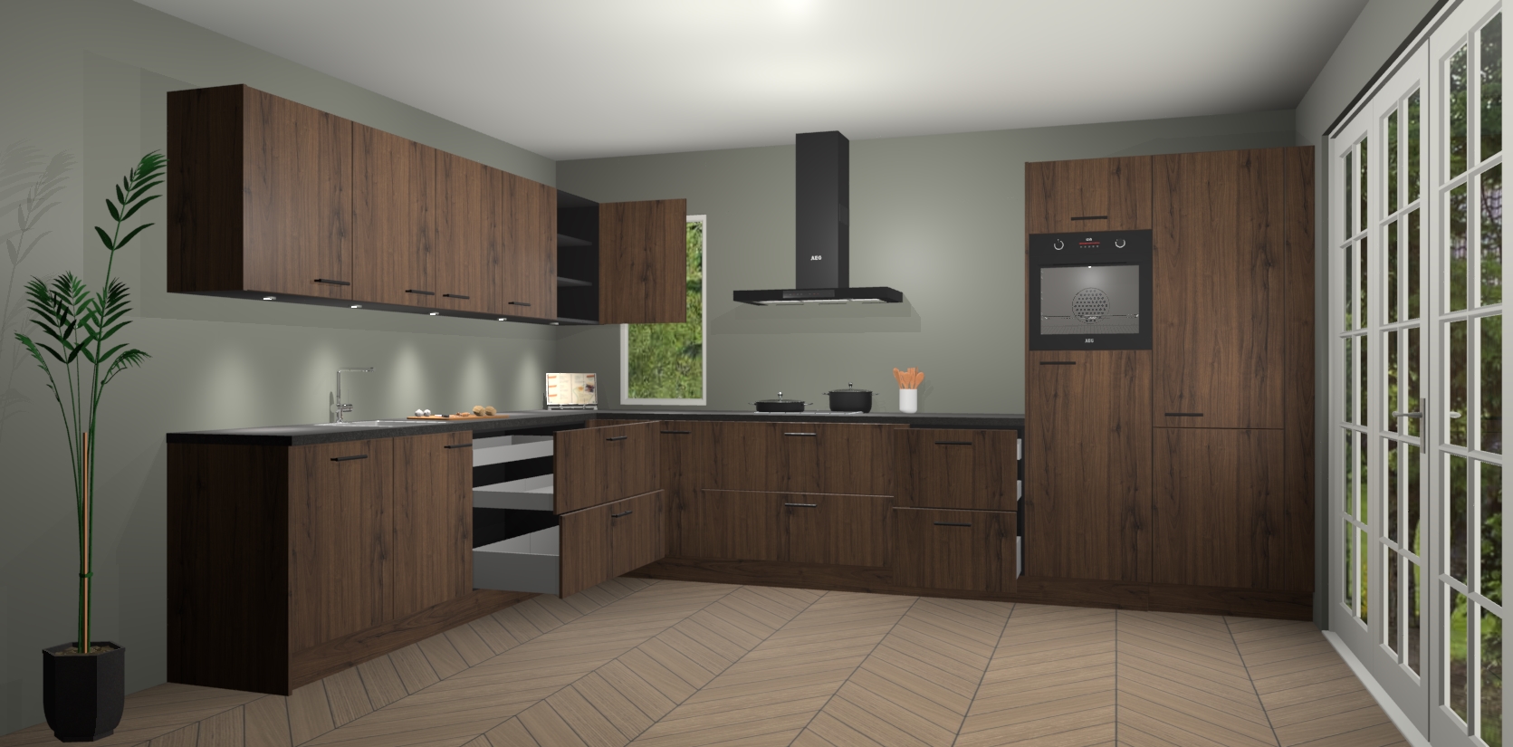 Heeft u nog apparatuur nodig? Geen probleem: de noten keuken Harare bevat vijf ingebouwde apparaten - een oven, inductiekookplaat, afzuigkap, vaatwasser en koelkast - die gemakkelijk kunnen worden bijgewerkt naar AEG na bestelling. En als dat nog niet genoeg is; onze kasten worden pre-geassembleerd geleverd en zijn verkrijgbaar tegen een vastgeroeste lage prijs! U hoeft nooit meer te zoeken naar goede kwaliteit en service want onze producten hebben echt Duitse kwaliteit.