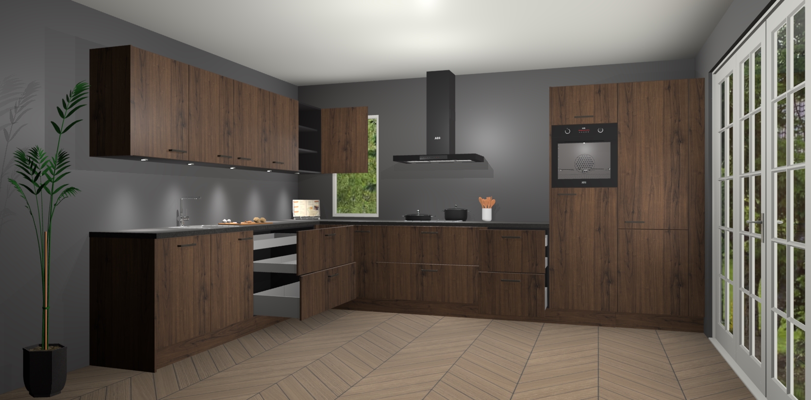 Kom dichtbij de perfecte keuken van uw dromen met de noten keuken Harare. Met een prachtige houtlook en eigentijds ontwerp, straalt deze keuken warmte en sfeer uit. Of u nu liefhebber bent van traditionele of moderne stijlen, er is genoeg ruimte om aan al uw behoeften te voldoen.