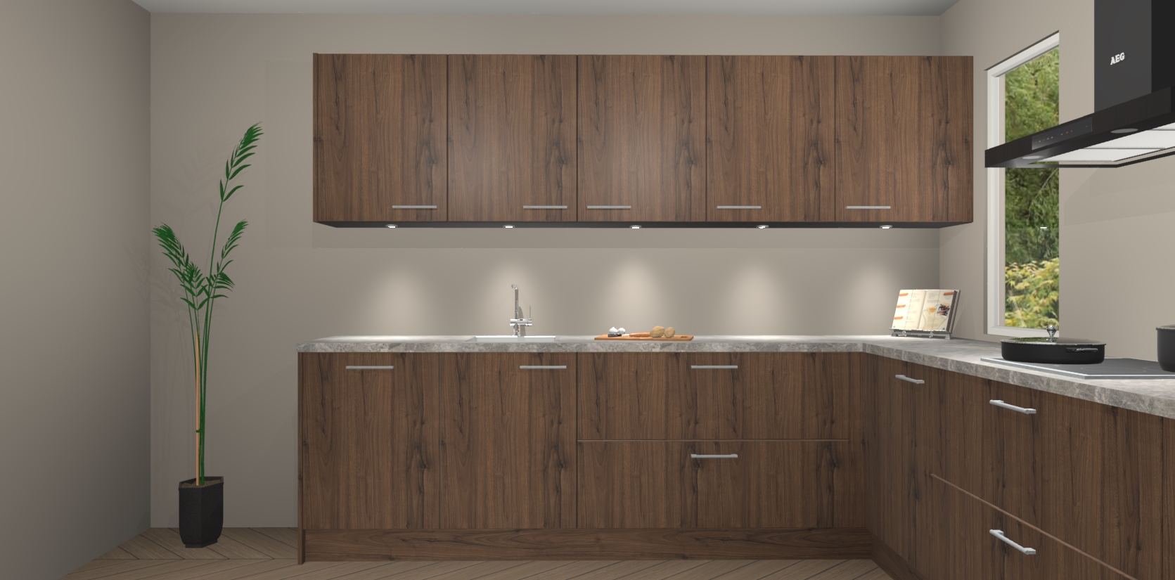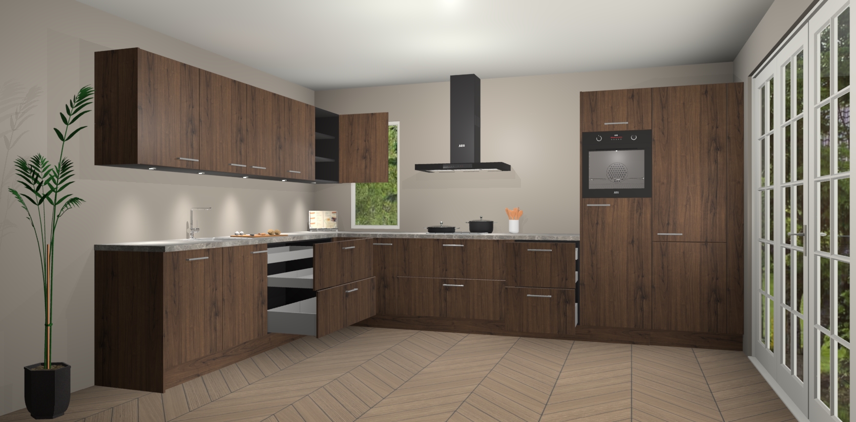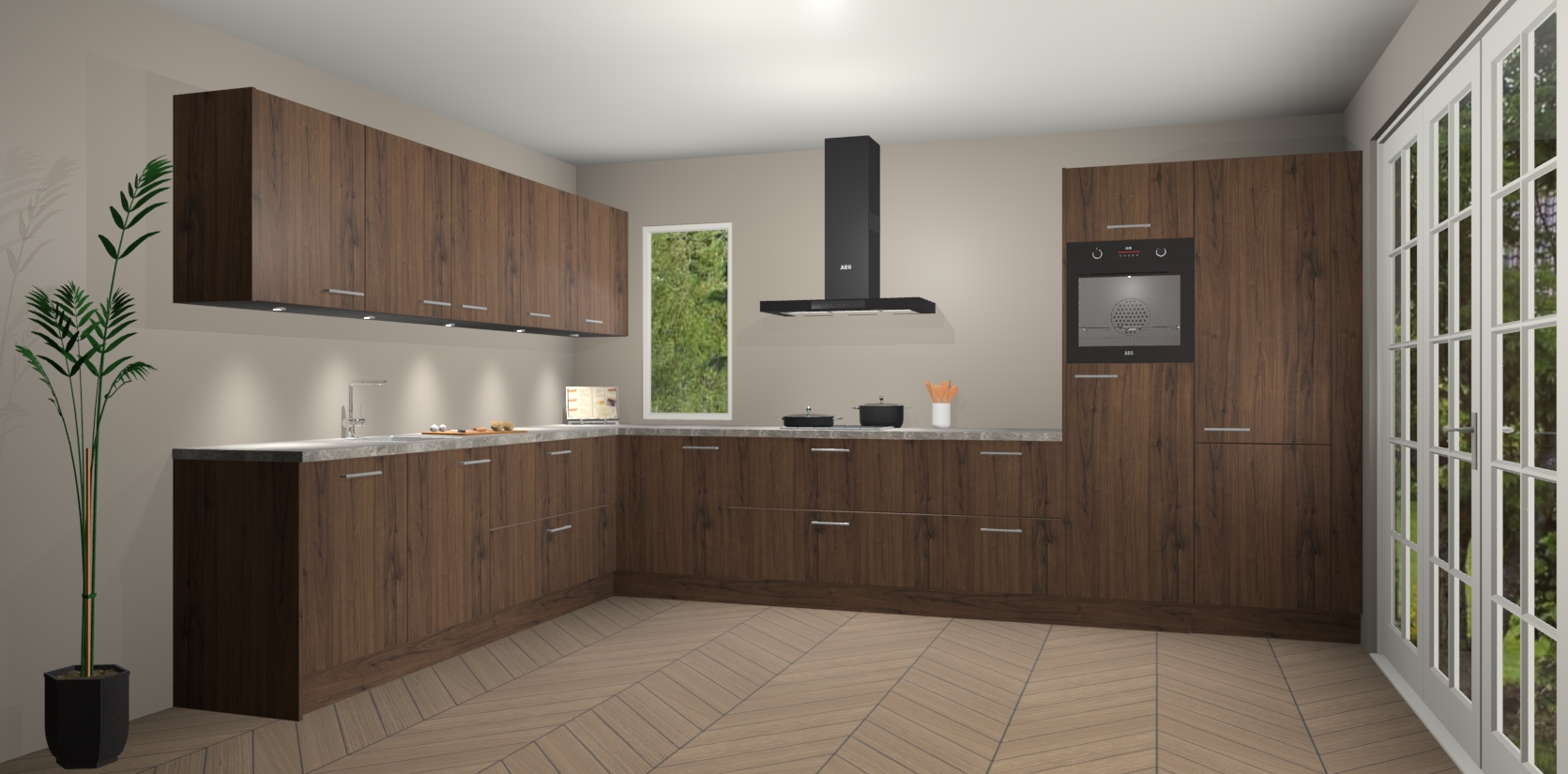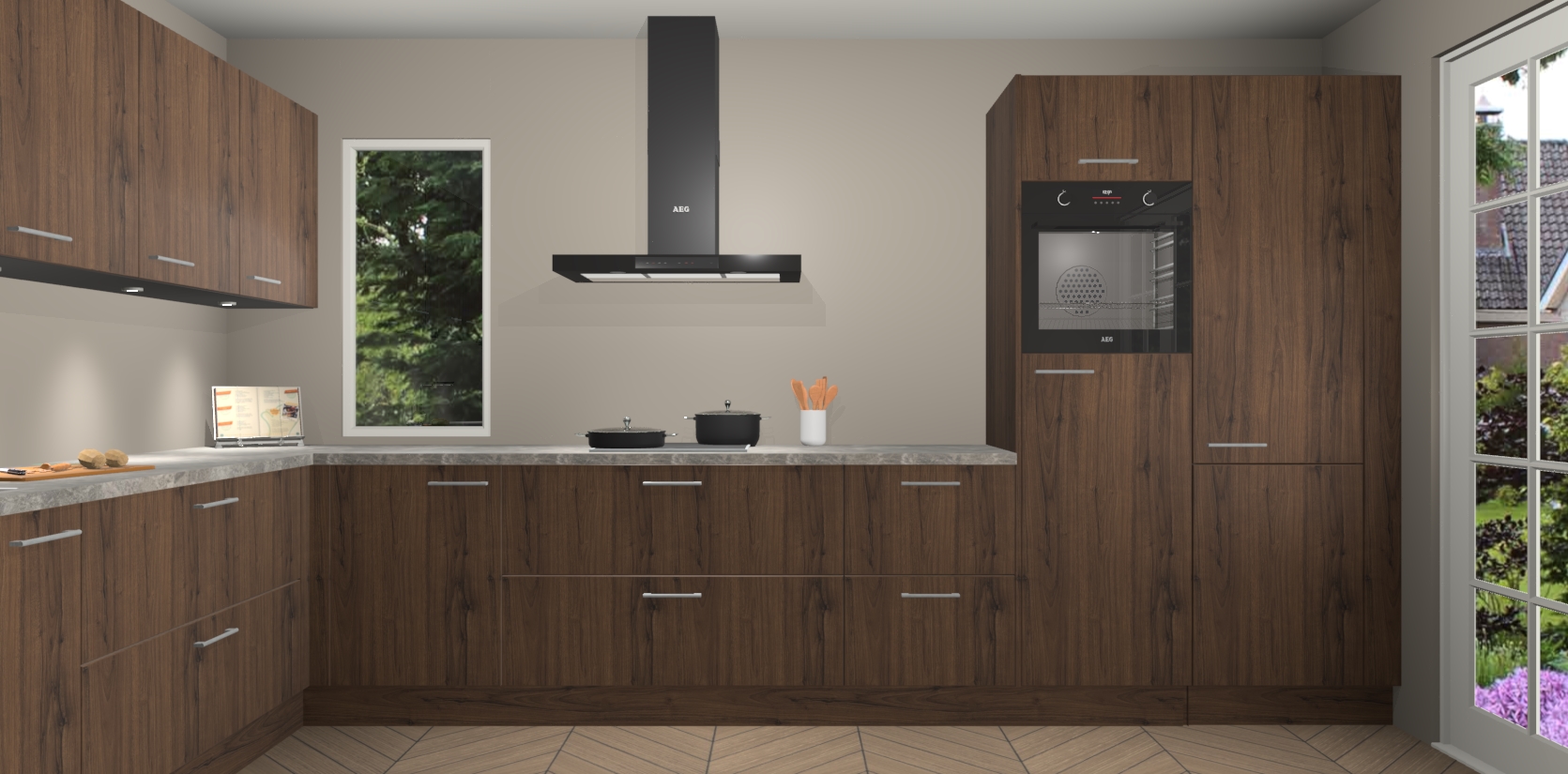 Heeft u nog apparatuur nodig? Geen probleem: de noten keuken Harare bevat vijf ingebouwde apparaten - een oven, inductiekookplaat, afzuigkap, vaatwasser en koelkast - die gemakkelijk kunnen worden bijgewerkt naar AEG na bestelling. En als dat nog niet genoeg is; onze kasten worden pre-geassembleerd geleverd en zijn verkrijgbaar tegen een vastgeroeste lage prijs! U hoeft nooit meer te zoeken naar goede kwaliteit en service want onze producten hebben echt Duitse kwaliteit.