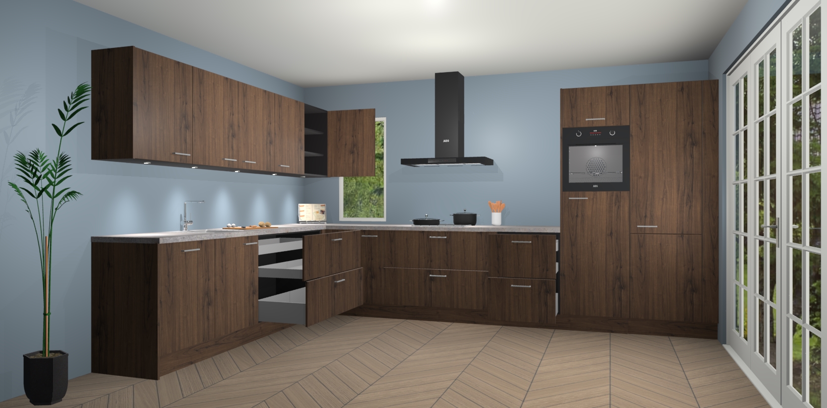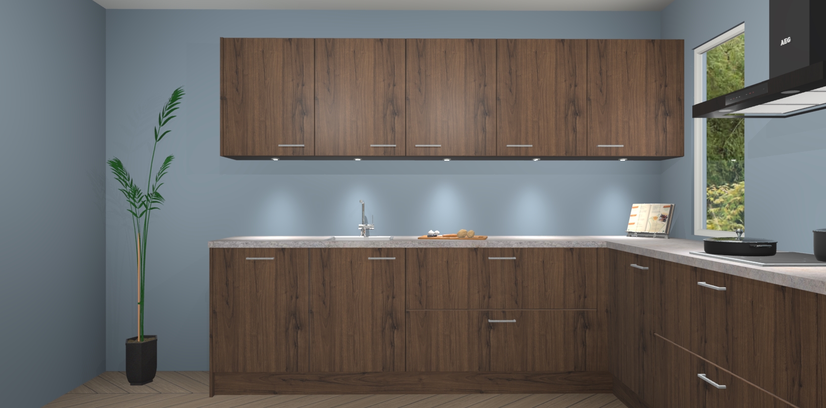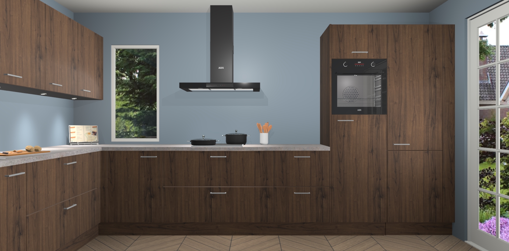 Heeft u nog apparatuur nodig? Geen probleem: de noten keuken Harare bevat vijf ingebouwde apparaten - een oven, inductiekookplaat, afzuigkap, vaatwasser en koelkast - die gemakkelijk kunnen worden bijgewerkt naar AEG na bestelling. En als dat nog niet genoeg is; onze kasten worden pre-geassembleerd geleverd en zijn verkrijgbaar tegen een vastgeroeste lage prijs! U hoeft nooit meer te zoeken naar goede kwaliteit en service want onze producten hebben echt Duitse kwaliteit.