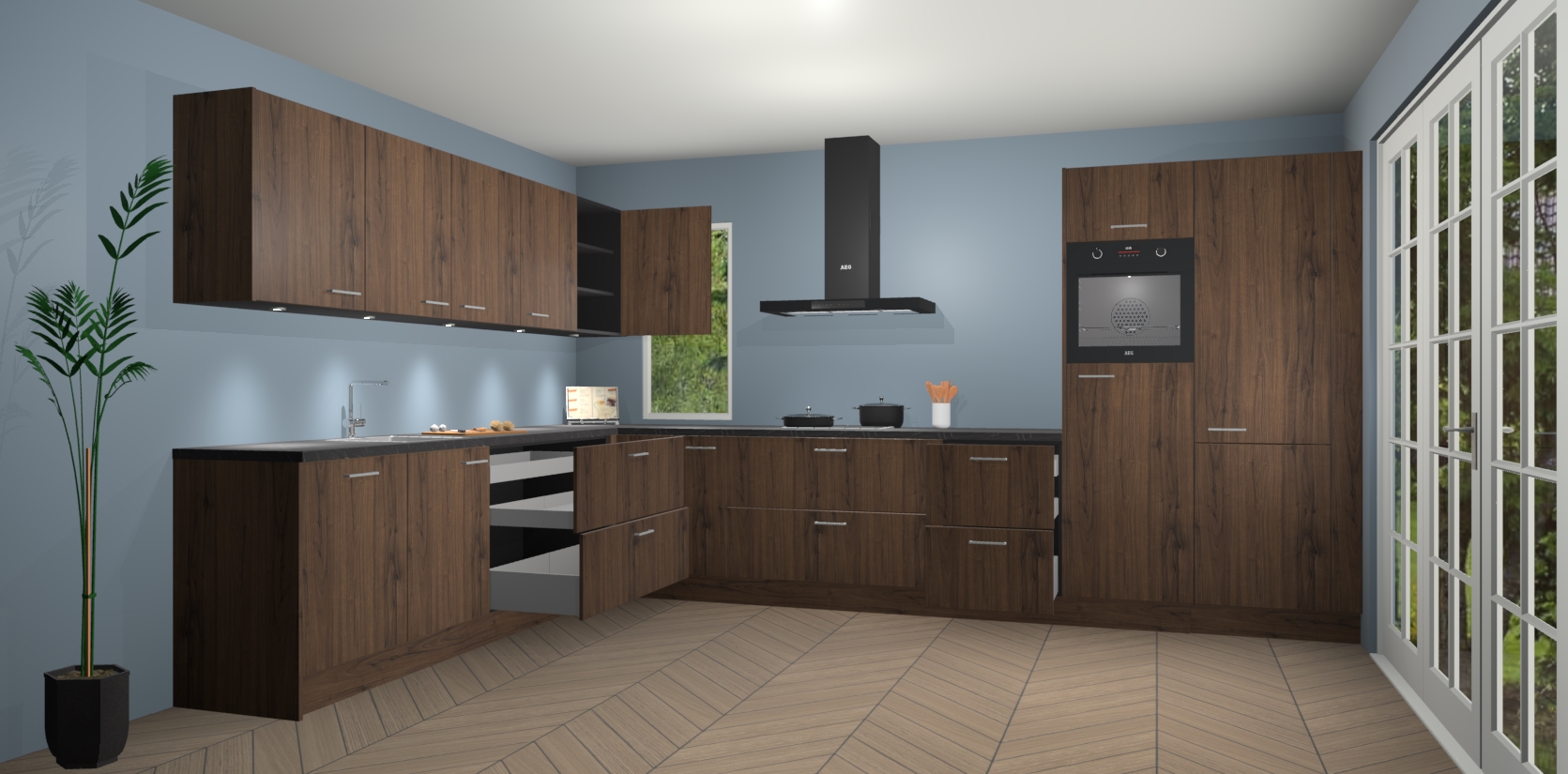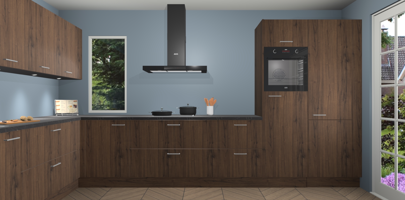 Heeft u nog apparatuur nodig? Geen probleem: de noten keuken Harare bevat vijf ingebouwde apparaten - een oven, inductiekookplaat, afzuigkap, vaatwasser en koelkast - die gemakkelijk kunnen worden bijgewerkt naar AEG na bestelling. En als dat nog niet genoeg is; onze kasten worden pre-geassembleerd geleverd en zijn verkrijgbaar tegen een vastgeroeste lage prijs! U hoeft nooit meer te zoeken naar goede kwaliteit en service want onze producten hebben echt Duitse kwaliteit.