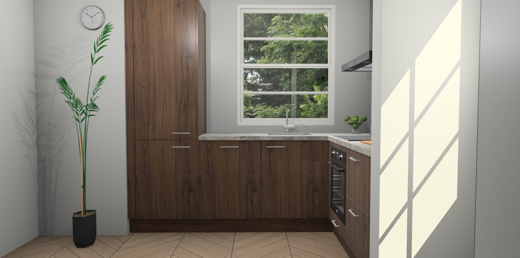Wilt u een echte aanwinst voor uw keuken, maar bent u op zoek naar iets specialers dan de standaardkeukens? Kies dan voor de Noten keuken Harbin! Dit prachtige hoekkeukenontwerp geeft u alle ruimte om optimaal te genieten van heerlijk koken. Het uitmuntende afwerkingsniveau, de fraaie houtstructuur en de sfeervolle zwarte grepen maken van de Noten keuken Harbin de perfecte keuze voor zowel enthousiaste thuiskoks als design-minded interieurliefhebbers.