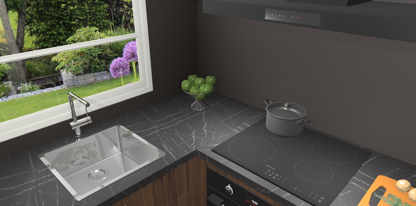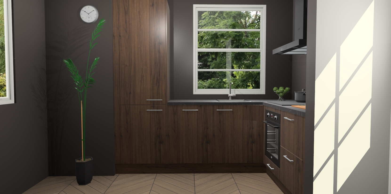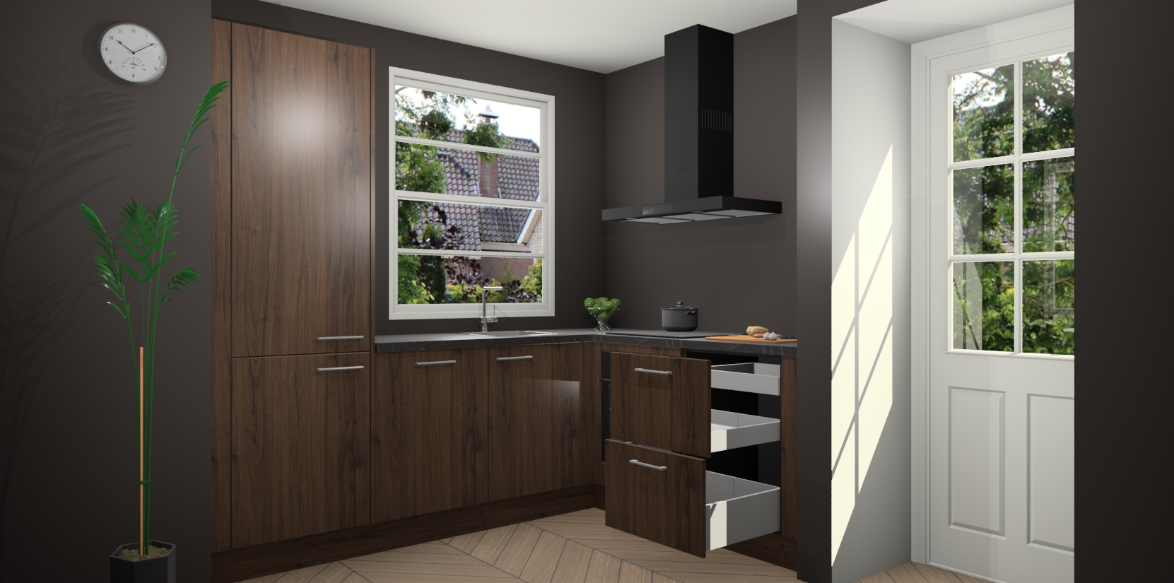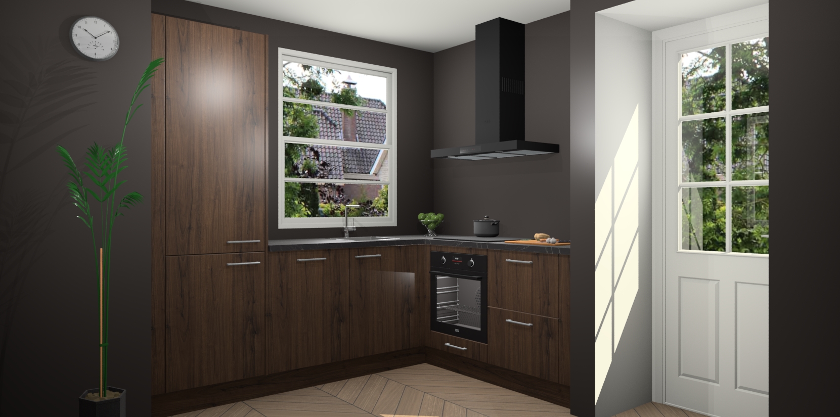 Wilt u een echte aanwinst voor uw keuken, maar bent u op zoek naar iets specialers dan de standaardkeukens? Kies dan voor de Noten keuken Harbin! Dit prachtige hoekkeukenontwerp geeft u alle ruimte om optimaal te genieten van heerlijk koken. Het uitmuntende afwerkingsniveau, de fraaie houtstructuur en de sfeervolle zwarte grepen maken van de Noten keuken Harbin de perfecte keuze voor zowel enthousiaste thuiskoks als design-minded interieurliefhebbers.