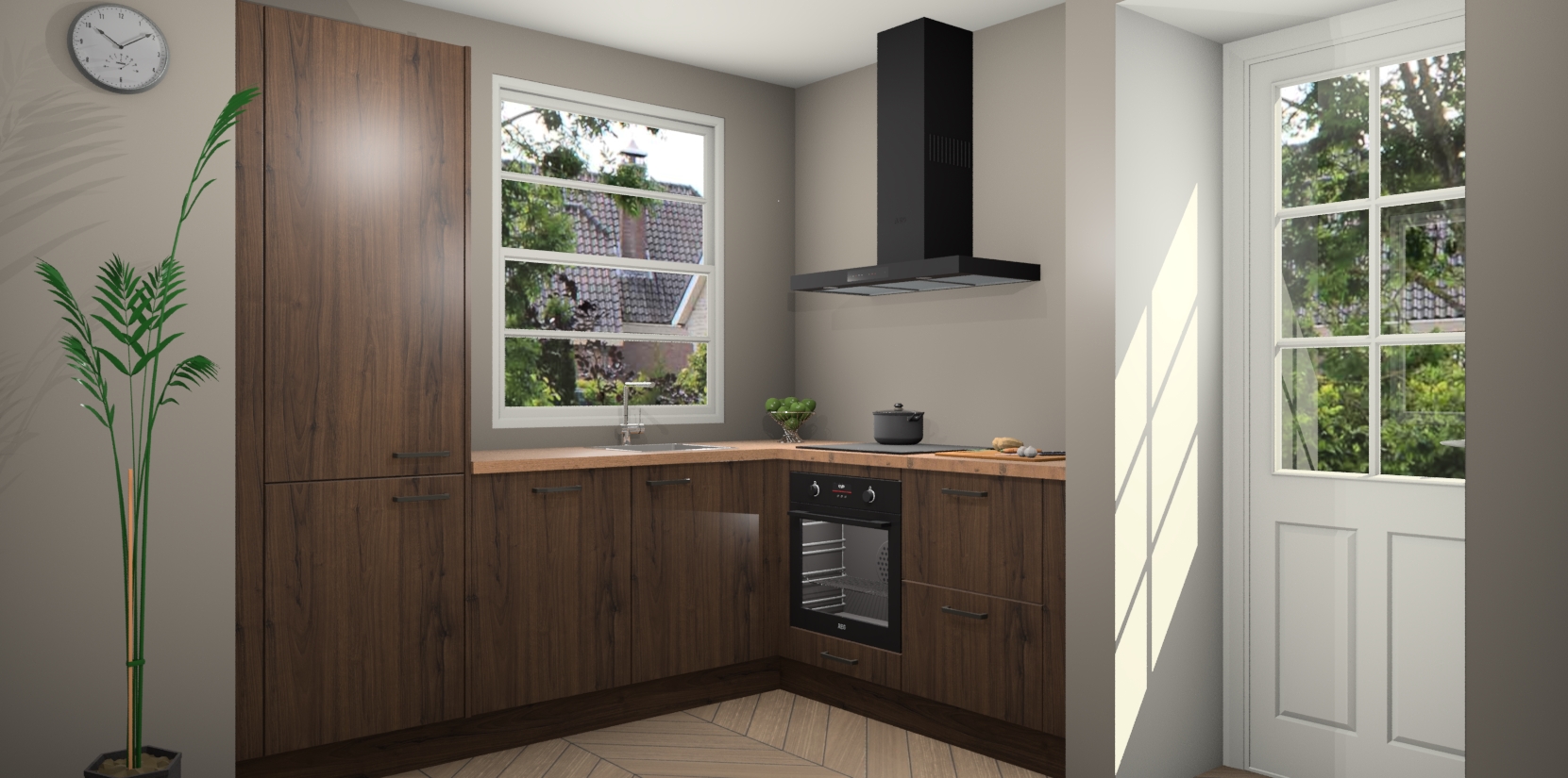 Plus: de Noten keuken Harbin is kant en klaar voorzien van 5 inbouwapparaten. U krijgt er direct bij: een oven, inductiekookplaat, afzuigkap, vaatwasser én koelkast. En als dat nog niet luxueus genoeg is, heeft u nog de mogelijkheid om de apparaten te upgraden naar AEG of om uw oven te vervangen door een combimagnetron. Ook fijn van voordeel zijn de softclosing-deuren die ervoor zorgen dat u geen geluid hoeft te maken wanneer u weer uw koelkastdeurtjes dichtdoet!