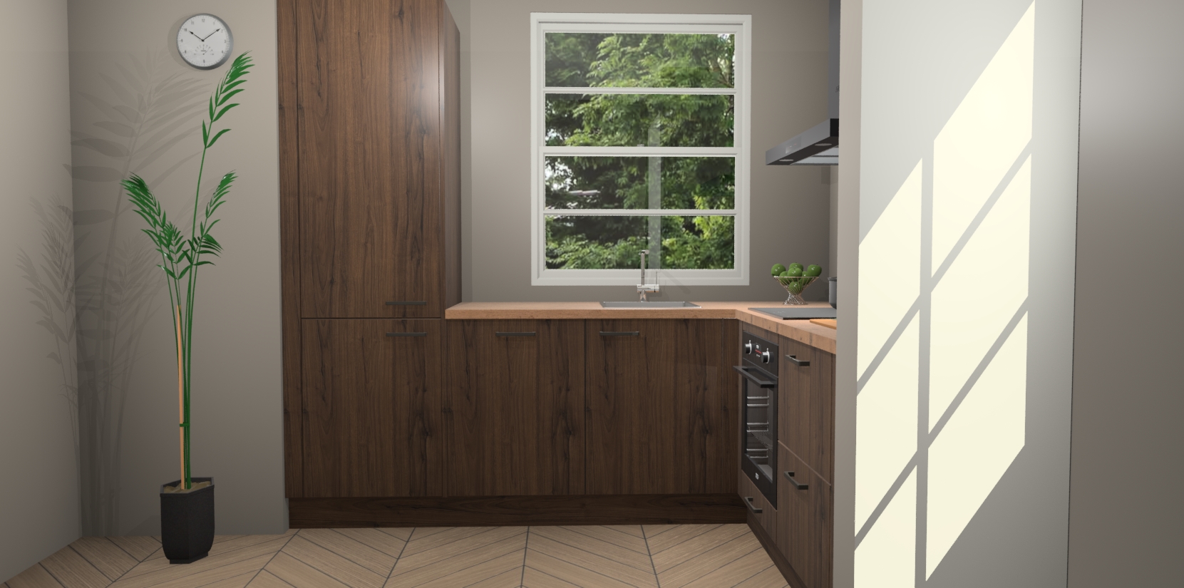 Wilt u een echte aanwinst voor uw keuken, maar bent u op zoek naar iets specialers dan de standaardkeukens? Kies dan voor de Noten keuken Harbin! Dit prachtige hoekkeukenontwerp geeft u alle ruimte om optimaal te genieten van heerlijk koken. Het uitmuntende afwerkingsniveau, de fraaie houtstructuur en de sfeervolle zwarte grepen maken van de Noten keuken Harbin de perfecte keuze voor zowel enthousiaste thuiskoks als design-minded interieurliefhebbers.
