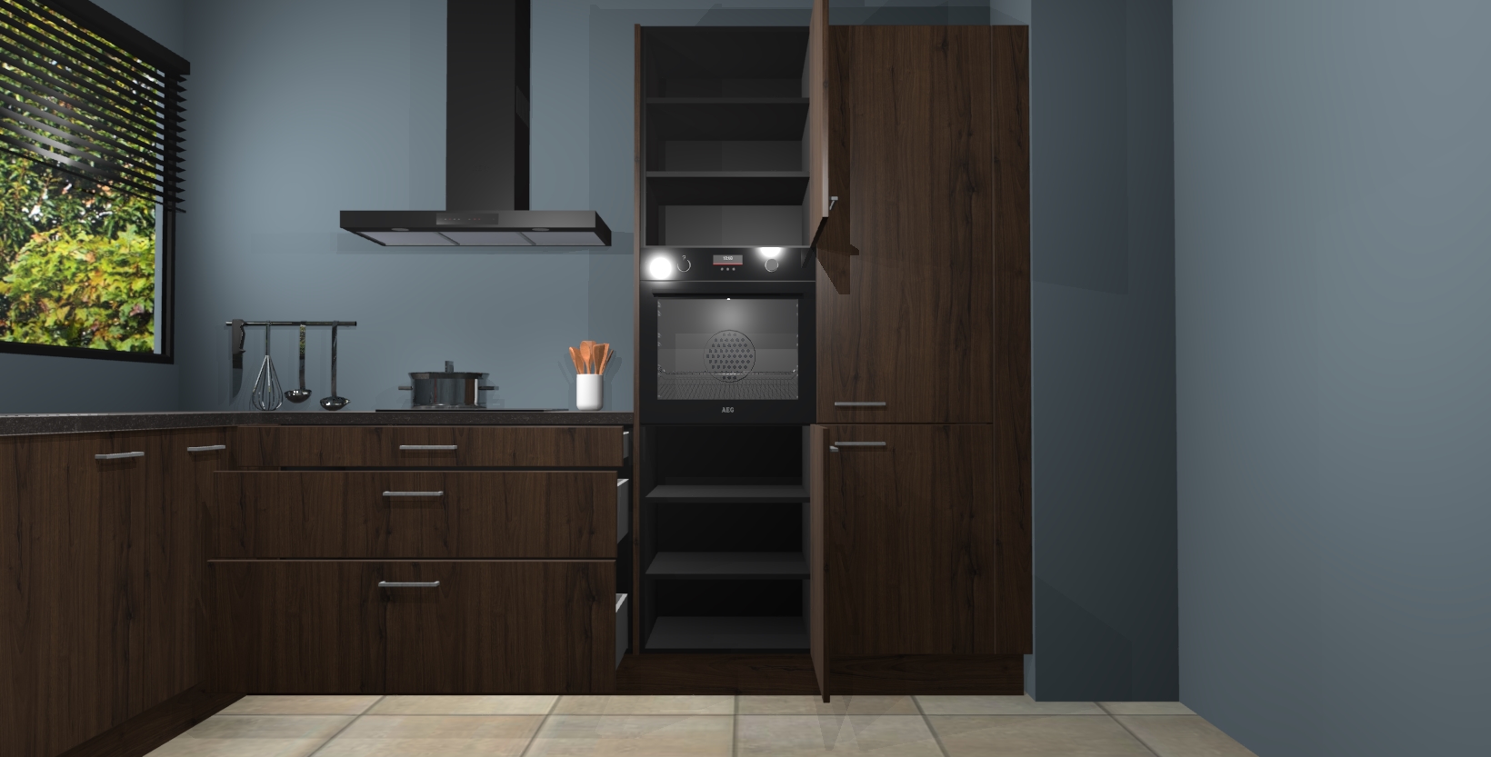 Met een modern, tijdloos design en ruime opslagruimte, zult u zich in no-time thuis voelen in uw nieuwe keuken. Uw leven wordt eenvoudiger met de soft-close deuren die voor het ultieme stille comfort zorgen - geen geluid dat u stoort terwijl u kookt. Ook is de keuken voorzien van 5 ingebouwde apparaten: een oven, inductie kookplaat, afzuigkap, vaatwasser en koelkast. Deze kunnen gemakkelijk na bestelling worden bijgewerkt naar AEG - waardoor uw luxe ervaring compleet is.