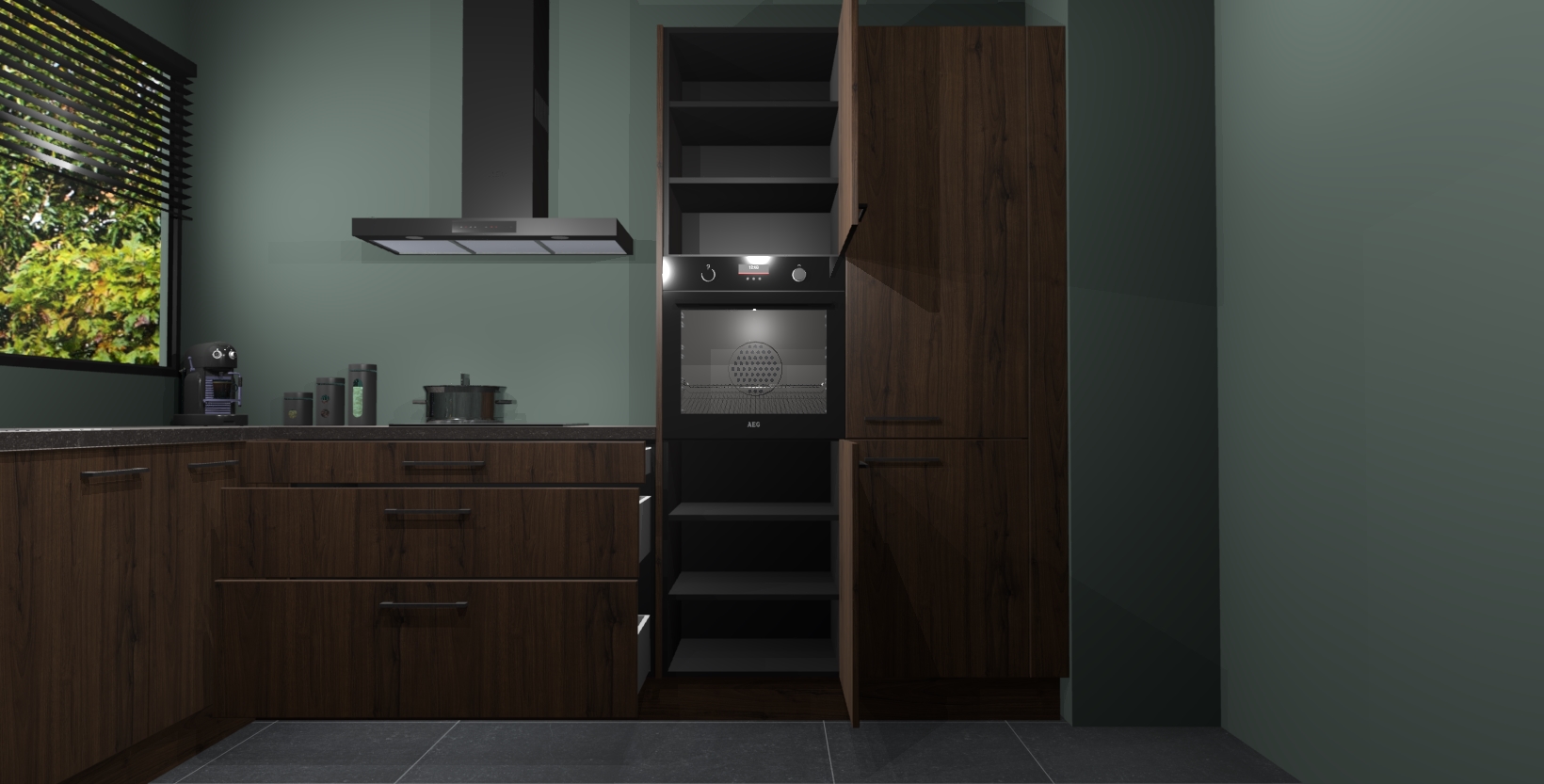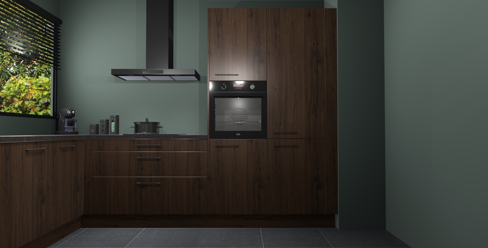 Met een modern, tijdloos design en ruime opslagruimte, zult u zich in no-time thuis voelen in uw nieuwe keuken. Uw leven wordt eenvoudiger met de soft-close deuren die voor het ultieme stille comfort zorgen - geen geluid dat u stoort terwijl u kookt. Ook is de keuken voorzien van 5 ingebouwde apparaten: een oven, inductie kookplaat, afzuigkap, vaatwasser en koelkast. Deze kunnen gemakkelijk na bestelling worden bijgewerkt naar AEG - waardoor uw luxe ervaring compleet is.
