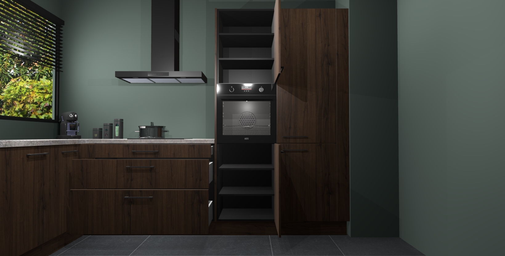 Met een modern, tijdloos design en ruime opslagruimte, zult u zich in no-time thuis voelen in uw nieuwe keuken. Uw leven wordt eenvoudiger met de soft-close deuren die voor het ultieme stille comfort zorgen - geen geluid dat u stoort terwijl u kookt. Ook is de keuken voorzien van 5 ingebouwde apparaten: een oven, inductie kookplaat, afzuigkap, vaatwasser en koelkast. Deze kunnen gemakkelijk na bestelling worden bijgewerkt naar AEG - waardoor uw luxe ervaring compleet is.