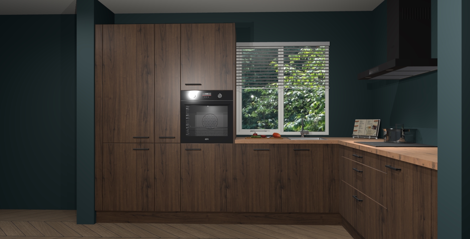 Met een modern, tijdloos design en ruime opslagruimte, zult u zich in no-time thuis voelen in uw nieuwe keuken. Uw leven wordt eenvoudiger met de soft-close deuren die voor het ultieme stille comfort zorgen - geen geluid dat u stoort terwijl u kookt. Ook is de keuken voorzien van 5 ingebouwde apparaten: een oven, inductie kookplaat, afzuigkap, vaatwasser en koelkast. Deze kunnen gemakkelijk na bestelling worden bijgewerkt naar AEG - waardoor uw luxe ervaring compleet is.