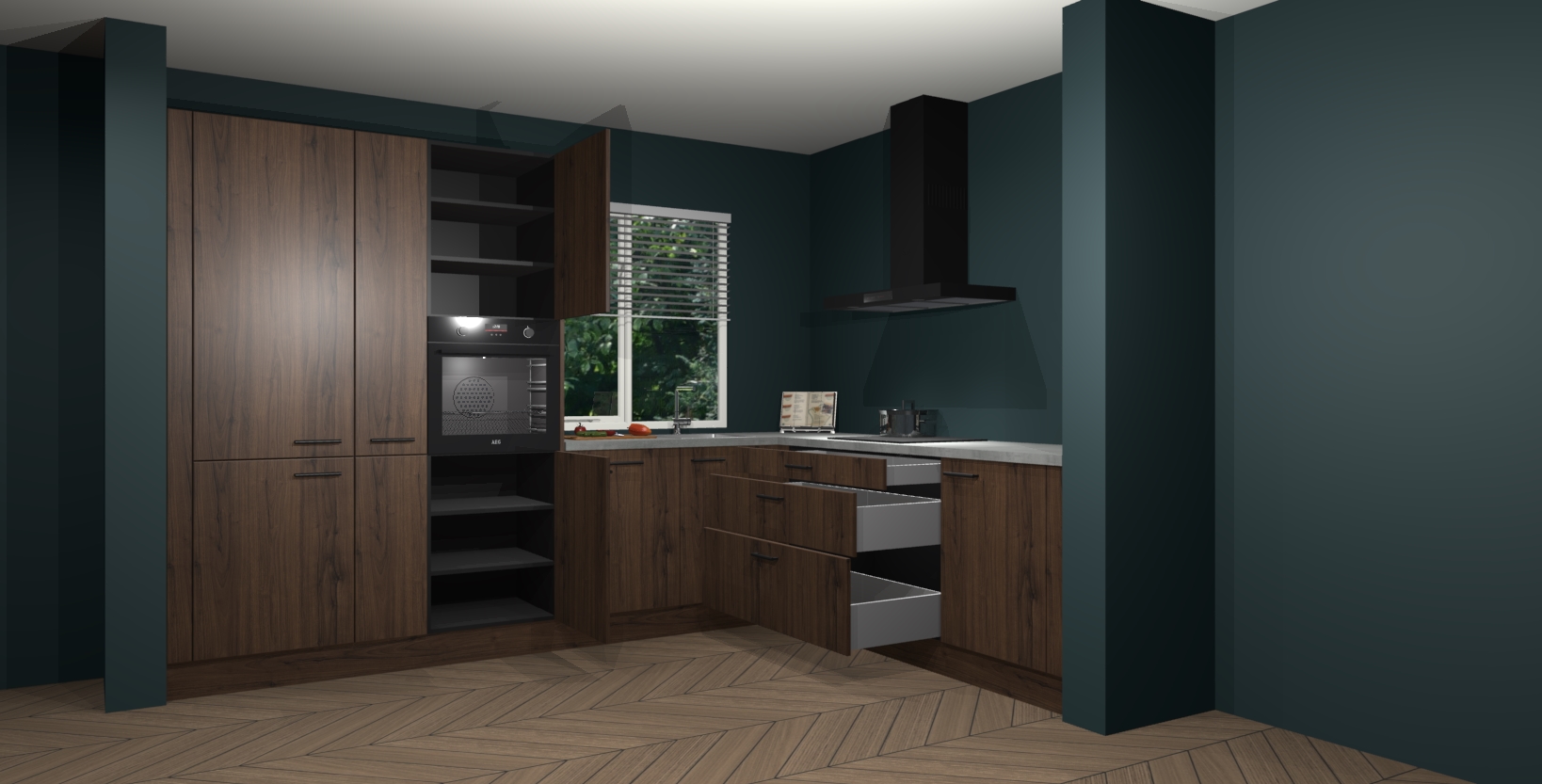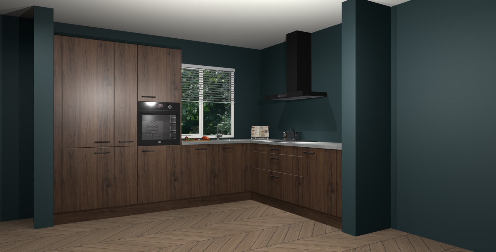 Met een modern, tijdloos design en ruime opslagruimte, zult u zich in no-time thuis voelen in uw nieuwe keuken. Uw leven wordt eenvoudiger met de soft-close deuren die voor het ultieme stille comfort zorgen - geen geluid dat u stoort terwijl u kookt. Ook is de keuken voorzien van 5 ingebouwde apparaten: een oven, inductie kookplaat, afzuigkap, vaatwasser en koelkast. Deze kunnen gemakkelijk na bestelling worden bijgewerkt naar AEG - waardoor uw luxe ervaring compleet is.