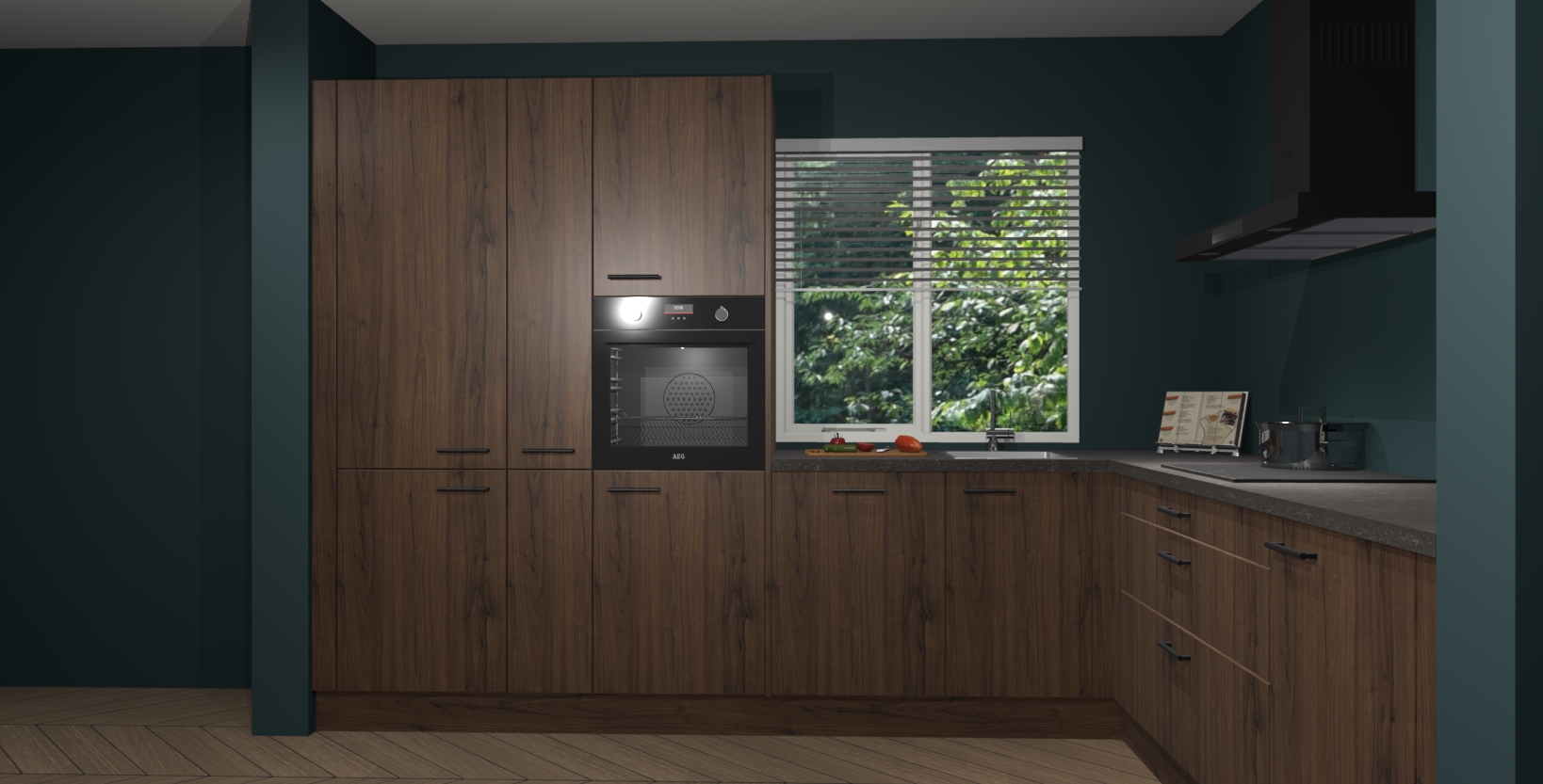 Met een modern, tijdloos design en ruime opslagruimte, zult u zich in no-time thuis voelen in uw nieuwe keuken. Uw leven wordt eenvoudiger met de soft-close deuren die voor het ultieme stille comfort zorgen - geen geluid dat u stoort terwijl u kookt. Ook is de keuken voorzien van 5 ingebouwde apparaten: een oven, inductie kookplaat, afzuigkap, vaatwasser en koelkast. Deze kunnen gemakkelijk na bestelling worden bijgewerkt naar AEG - waardoor uw luxe ervaring compleet is.