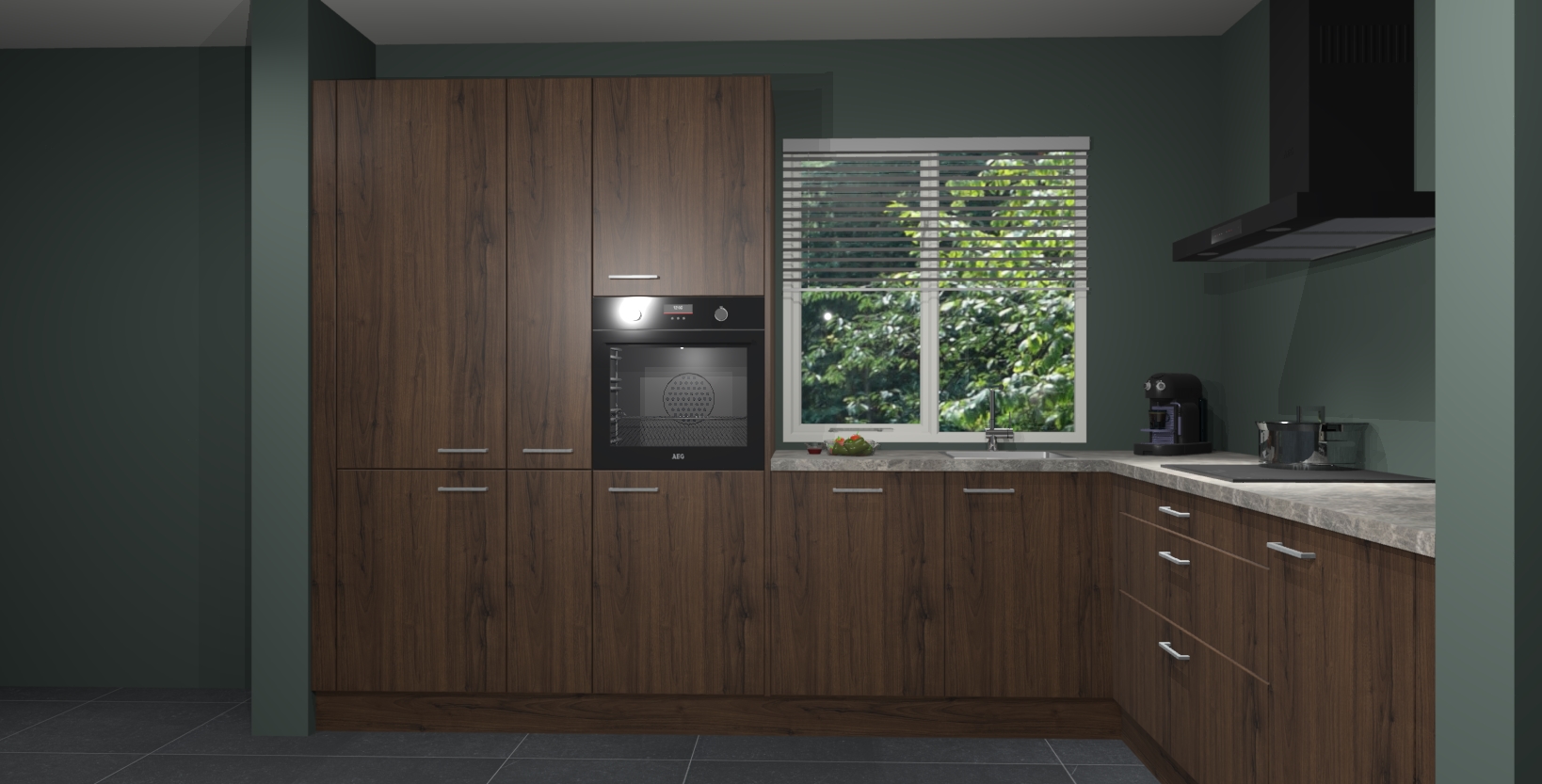 Met een modern, tijdloos design en ruime opslagruimte, zult u zich in no-time thuis voelen in uw nieuwe keuken. Uw leven wordt eenvoudiger met de soft-close deuren die voor het ultieme stille comfort zorgen - geen geluid dat u stoort terwijl u kookt. Ook is de keuken voorzien van 5 ingebouwde apparaten: een oven, inductie kookplaat, afzuigkap, vaatwasser en koelkast. Deze kunnen gemakkelijk na bestelling worden bijgewerkt naar AEG - waardoor uw luxe ervaring compleet is.