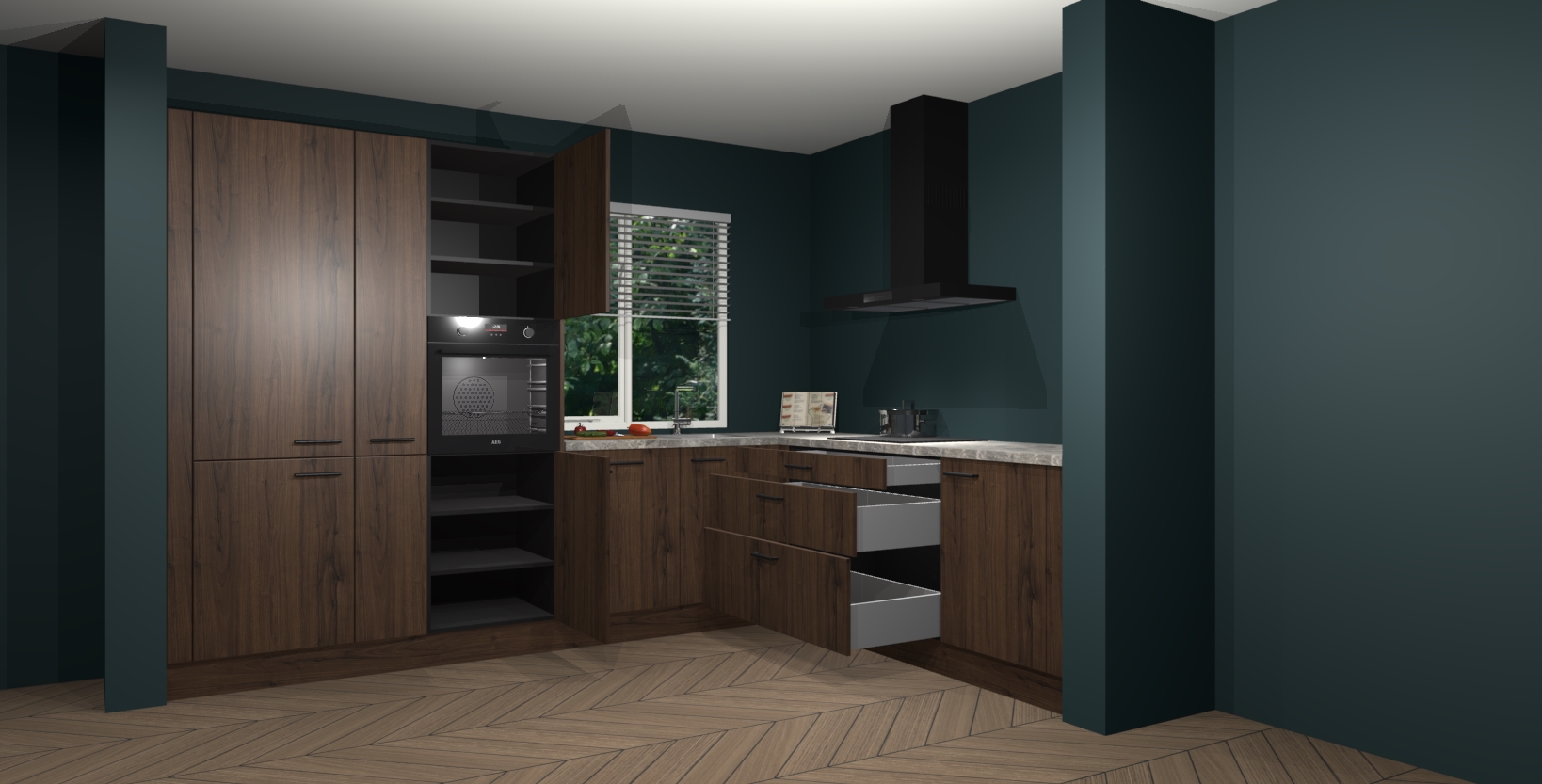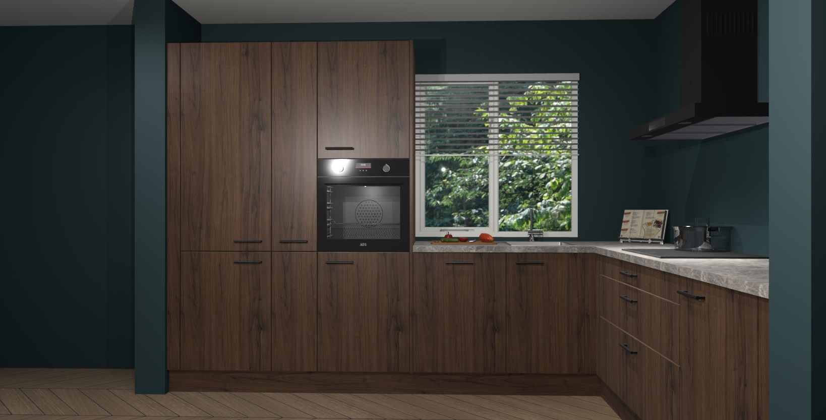 Met een modern, tijdloos design en ruime opslagruimte, zult u zich in no-time thuis voelen in uw nieuwe keuken. Uw leven wordt eenvoudiger met de soft-close deuren die voor het ultieme stille comfort zorgen - geen geluid dat u stoort terwijl u kookt. Ook is de keuken voorzien van 5 ingebouwde apparaten: een oven, inductie kookplaat, afzuigkap, vaatwasser en koelkast. Deze kunnen gemakkelijk na bestelling worden bijgewerkt naar AEG - waardoor uw luxe ervaring compleet is.