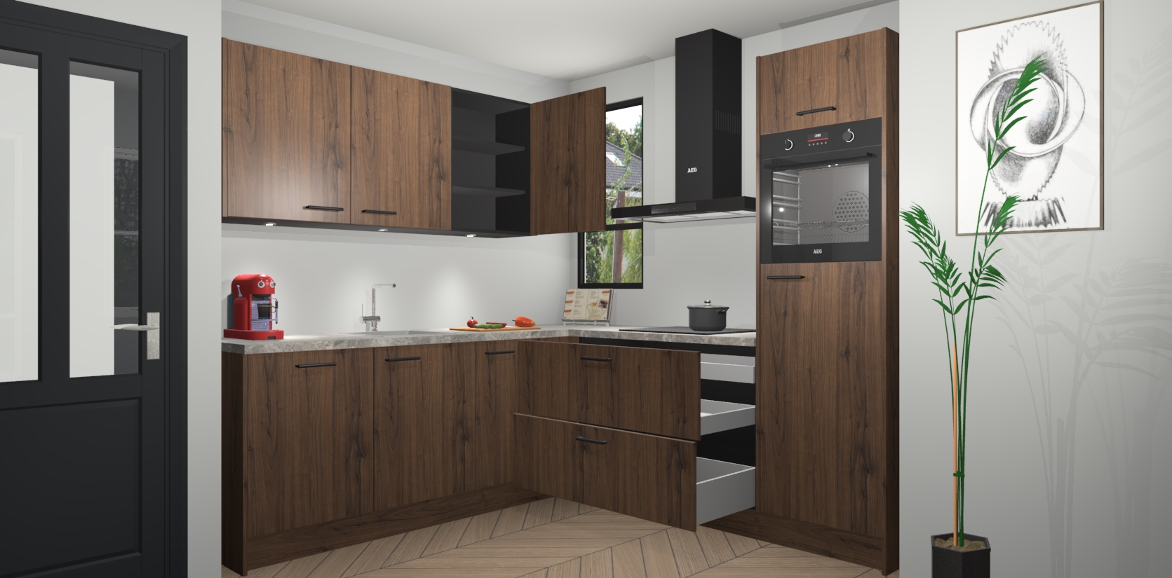 Als extra werd de prijs zo laag mogelijk vastgesteld, zonder aan de kwaliteit te raken. Zo heb je gegarandeerde Duitse keukenkwaliteit waarmee je jarenlang plezier beleeft aan het ontwerp. En dat alles wordt gecombineerd met een supersnelle service van maar liefst 7 weken!