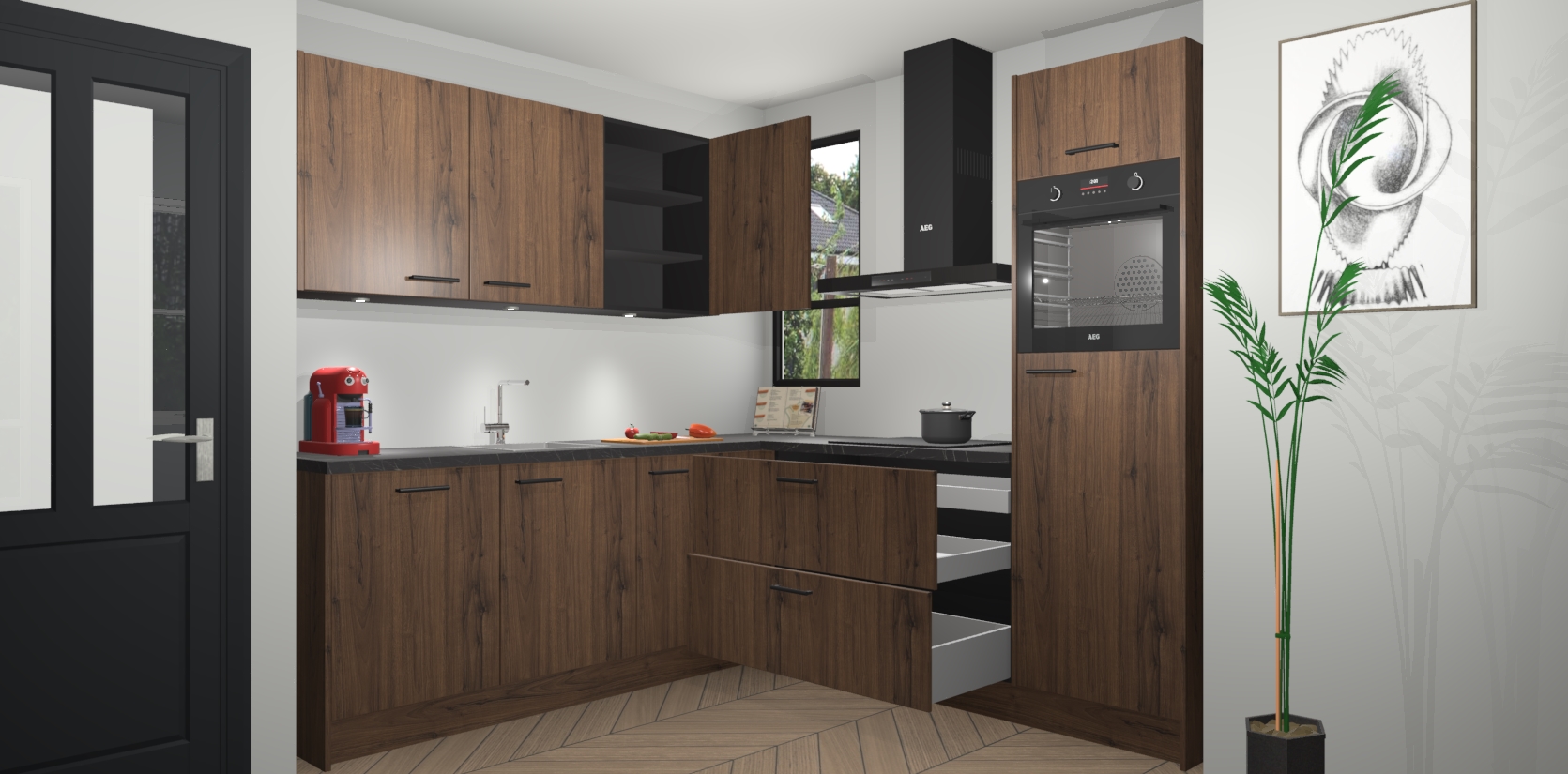 Als extra werd de prijs zo laag mogelijk vastgesteld, zonder aan de kwaliteit te raken. Zo heb je gegarandeerde Duitse keukenkwaliteit waarmee je jarenlang plezier beleeft aan het ontwerp. En dat alles wordt gecombineerd met een supersnelle service van maar liefst 7 weken!