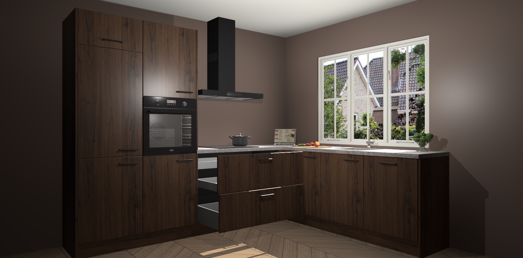 Heeft u genoeg van dezelfde keukenontwerpen die de markt overspoelen? Dan is de Noten keuken Kazan de juiste keuze voor u! Deze prachtige hoekkeuken heeft een modern en tijdloos design dat een elegant tintje geeft aan uw ruimte.