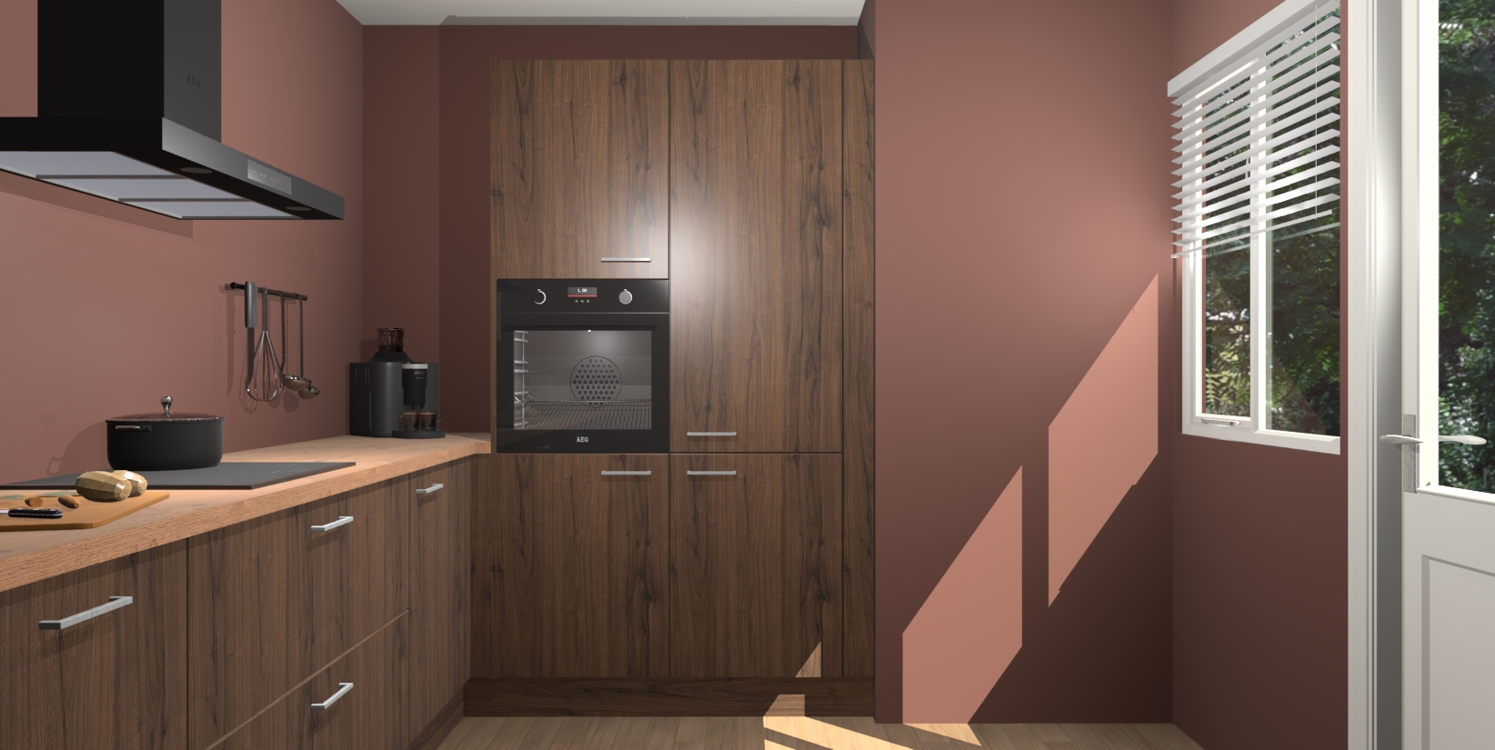 Welkom bij de Noten keuken Khao Lak. Deze prachtige keuken zal de komende jaren het middelpunt van de belangstelling in uw huis zijn. Uitgerust met vijf inbouwapparaten komt u nooit kookgereedschap tekort. Bovendien geeft de warme houtlook elke ruimte een uitnodigende en tijdloze uitstraling.