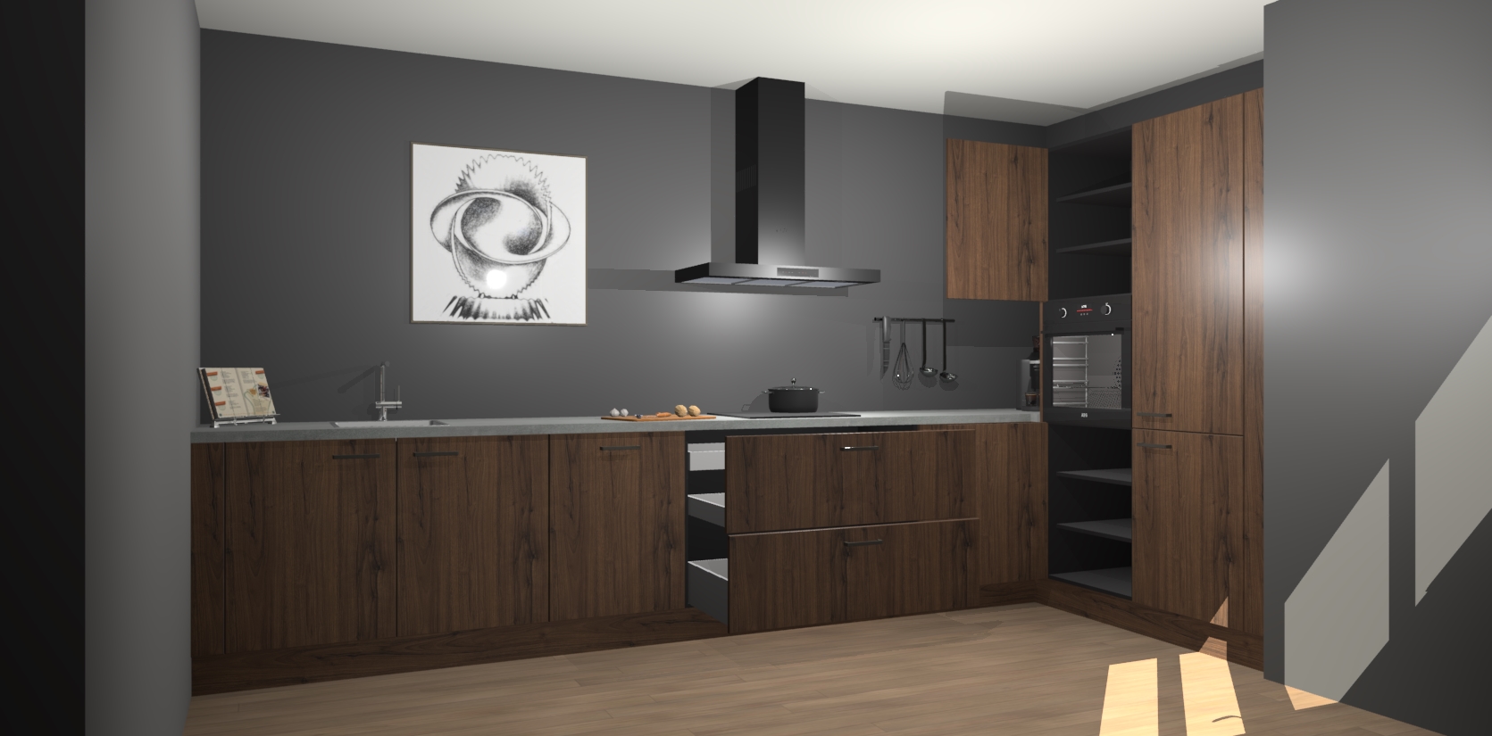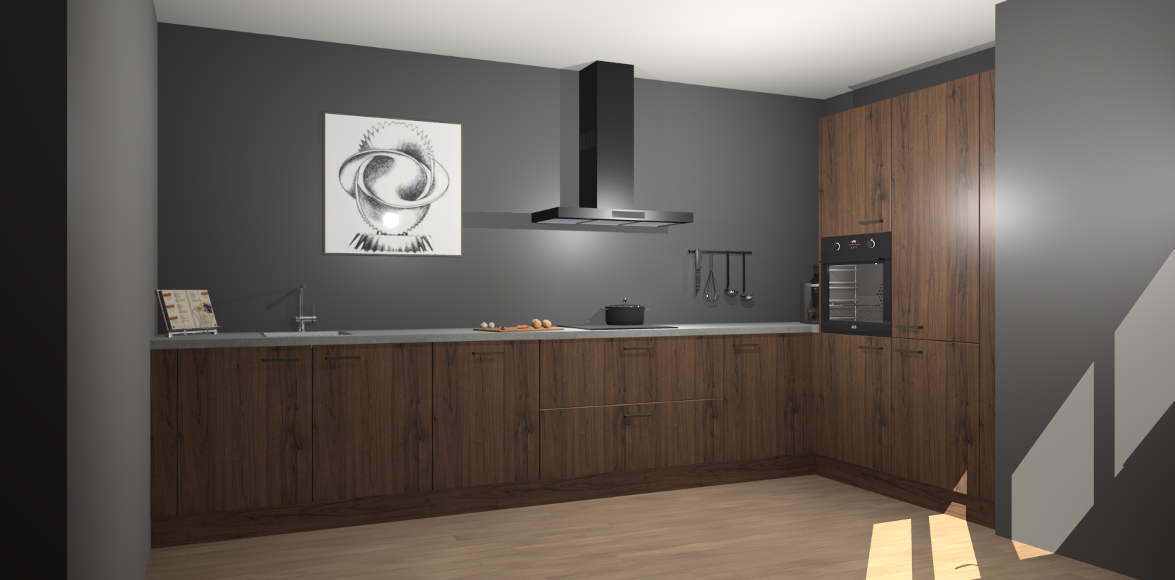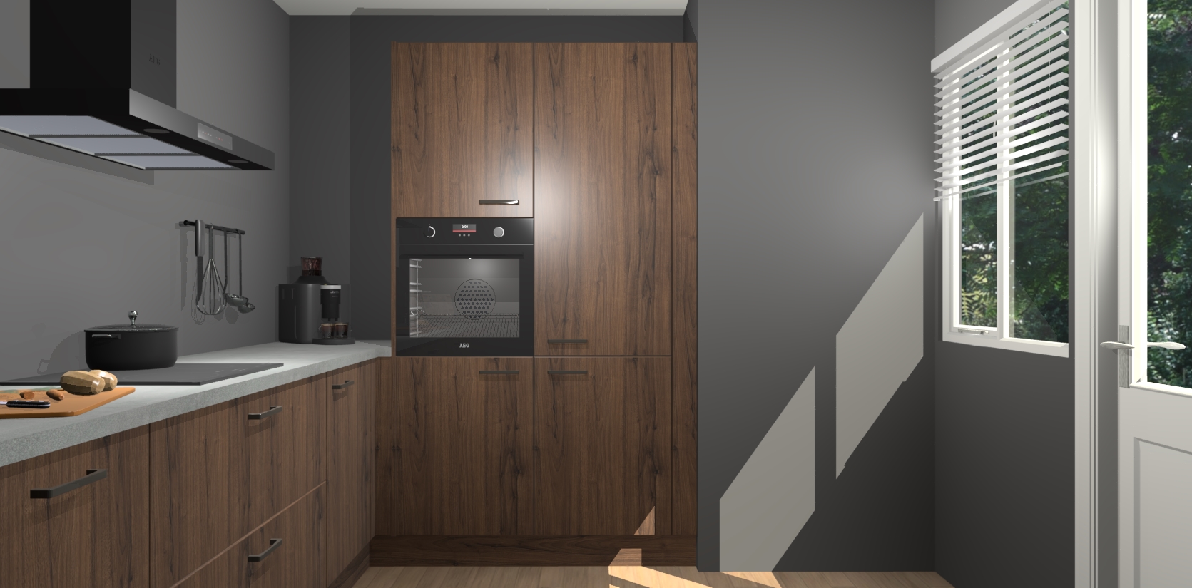 Welkom bij de Noten keuken Khao Lak. Deze prachtige keuken zal de komende jaren het middelpunt van de belangstelling in uw huis zijn. Uitgerust met vijf inbouwapparaten komt u nooit kookgereedschap tekort. Bovendien geeft de warme houtlook elke ruimte een uitnodigende en tijdloze uitstraling.
