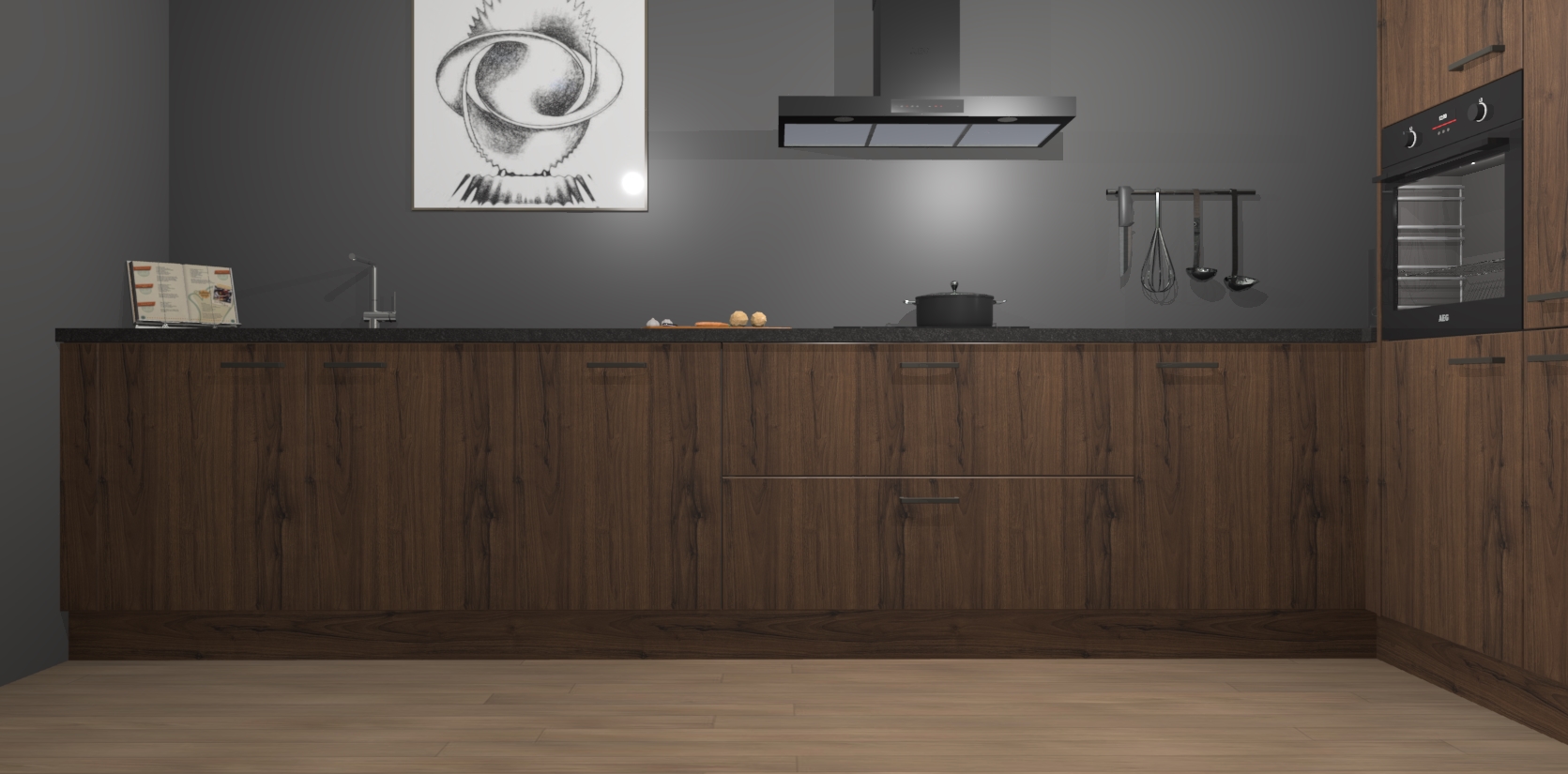 Welkom bij de Noten keuken Khao Lak. Deze prachtige keuken zal de komende jaren het middelpunt van de belangstelling in uw huis zijn. Uitgerust met vijf inbouwapparaten komt u nooit kookgereedschap tekort. Bovendien geeft de warme houtlook elke ruimte een uitnodigende en tijdloze uitstraling.